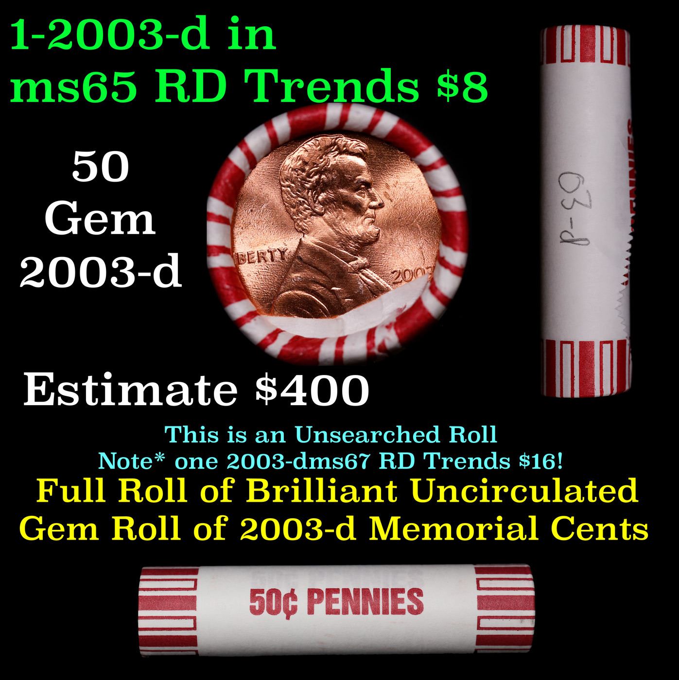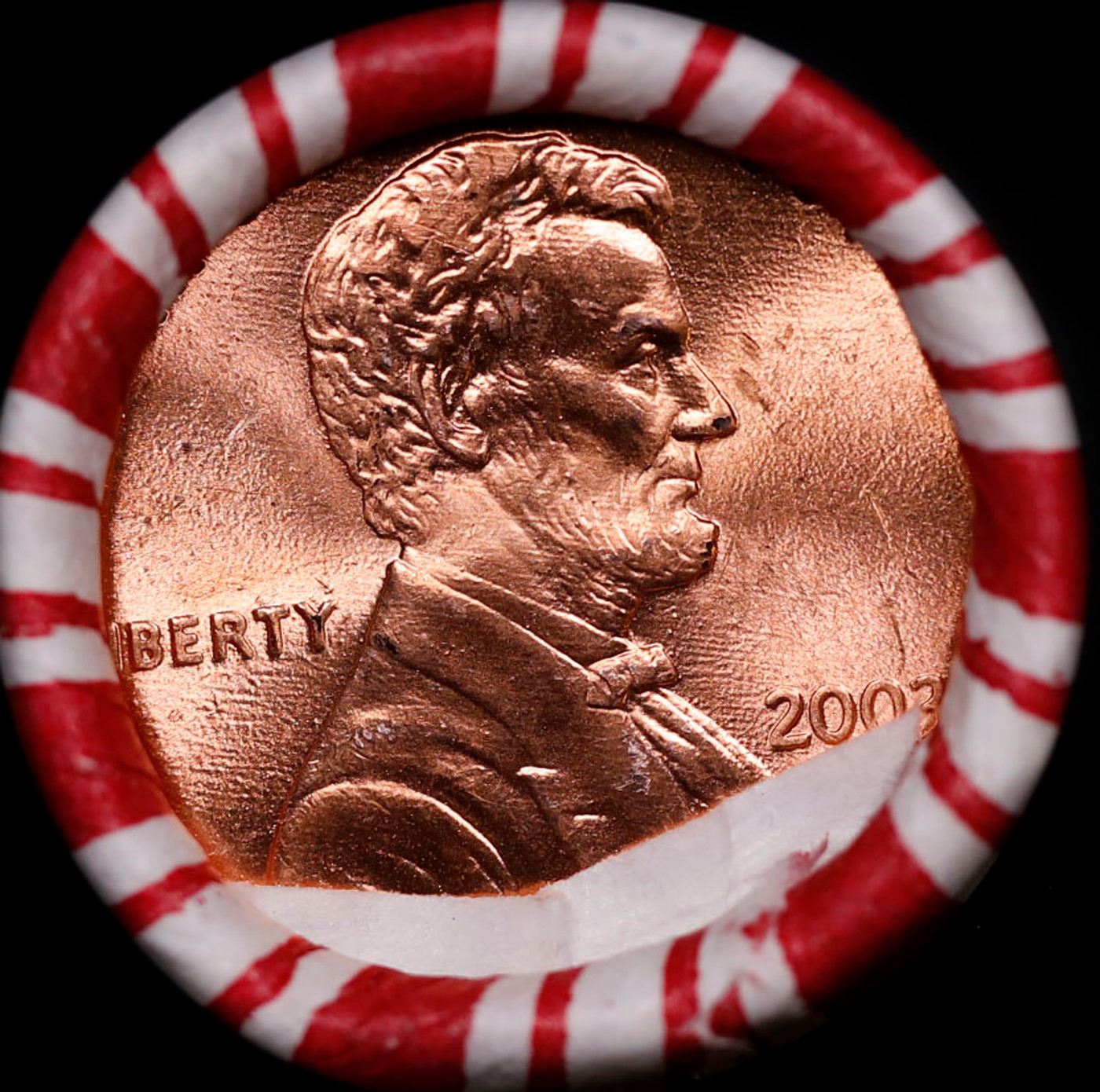 Shotgun Lincoln 1c roll, 2003-d 50 pcs Brandt 50c Wrapper.. A terrific Shotgun roll of Lincoln cents. Most if not all coin should be cherry red.
