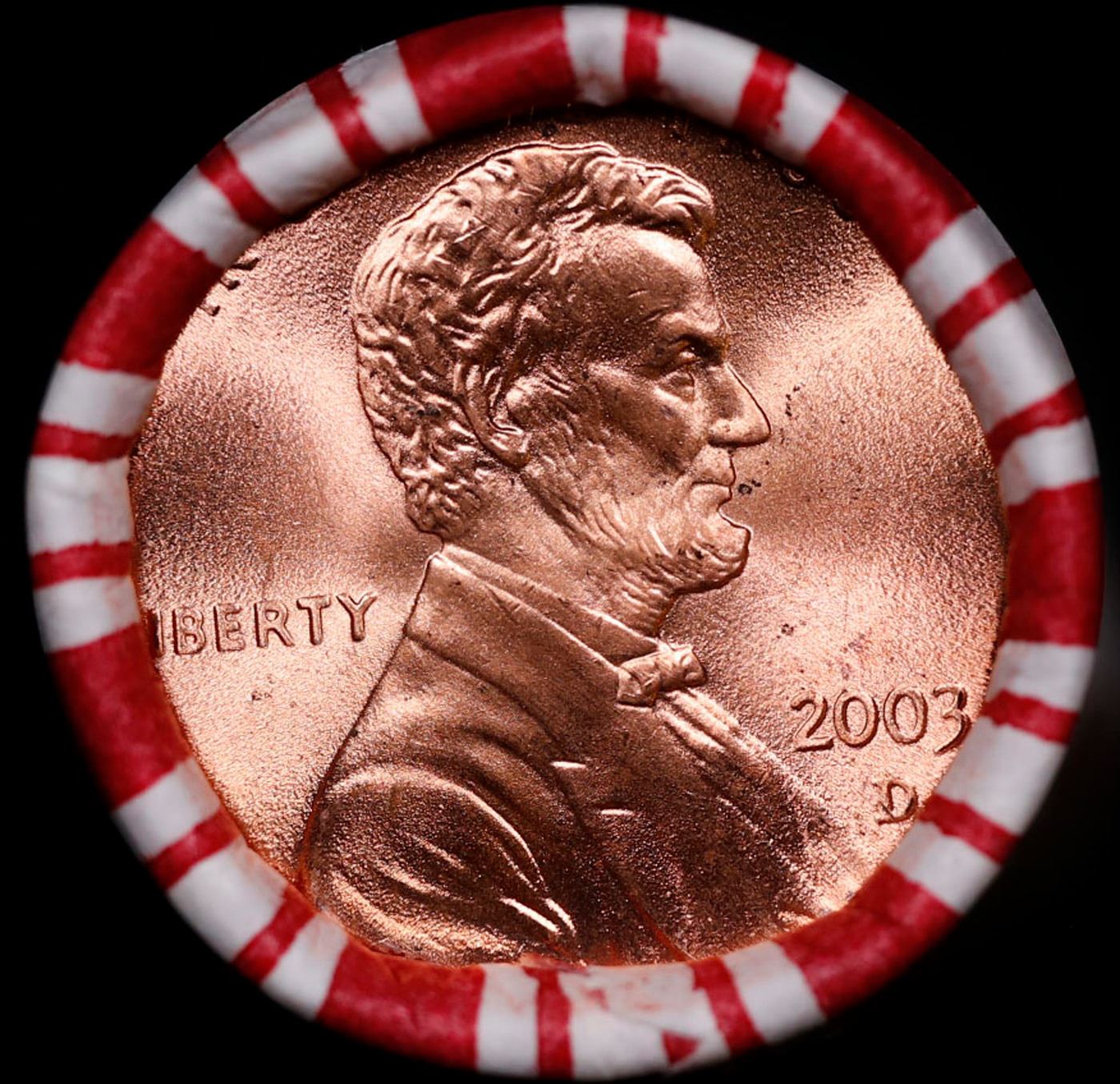 Shotgun Lincoln 1c roll, 2003-d 50 pcs Brandt 50c Wrapper.. A terrific Shotgun roll of Lincoln cents. Most if not all coin should be cherry red.