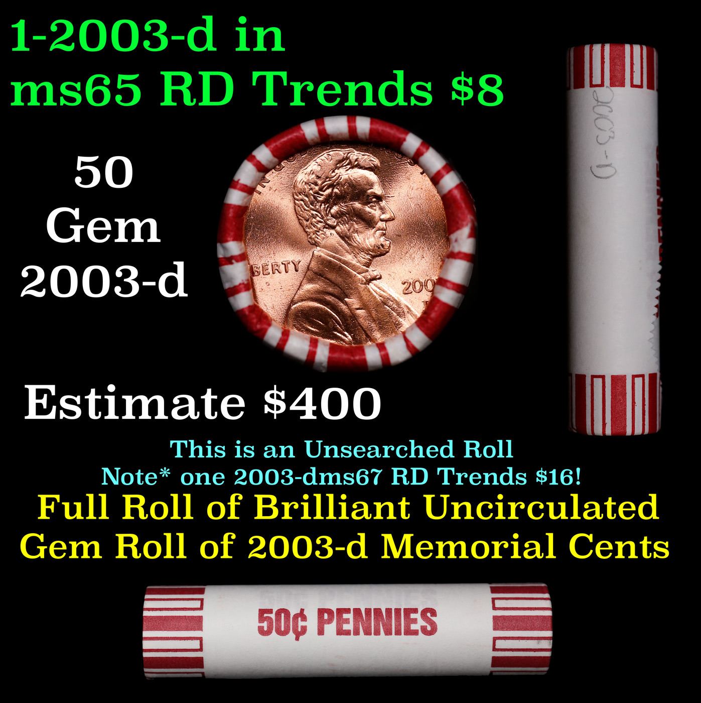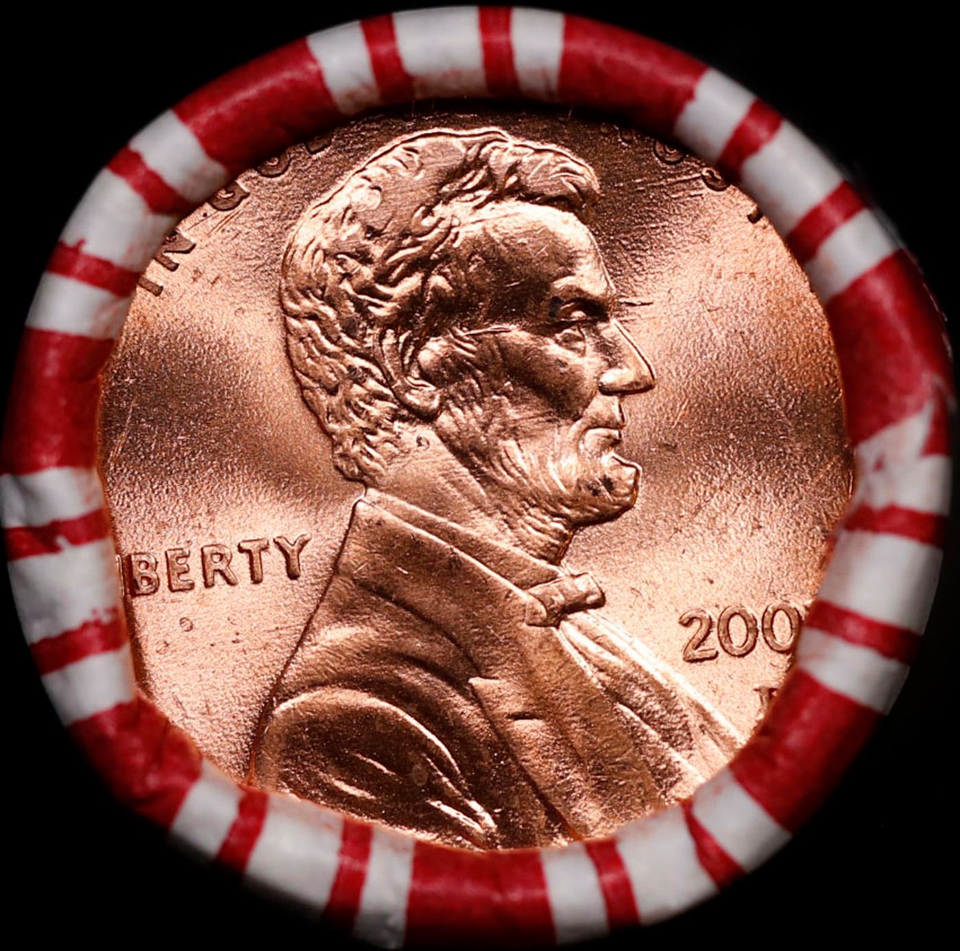 Shotgun Lincoln 1c roll, 2003-d 50 pcs Brandt 50c Wrapper.. A terrific Shotgun roll of Lincoln cents. Most if not all coin should be cherry red.