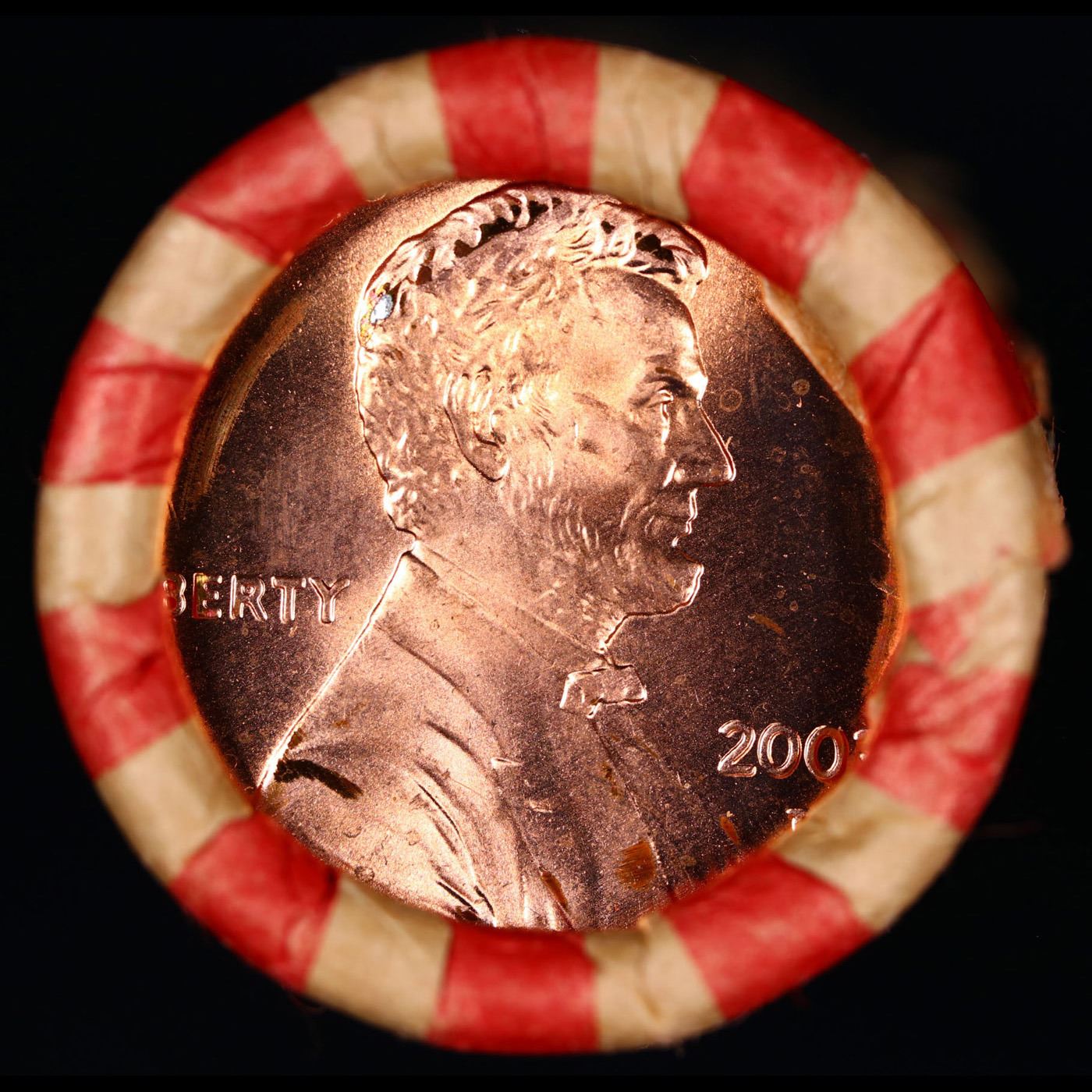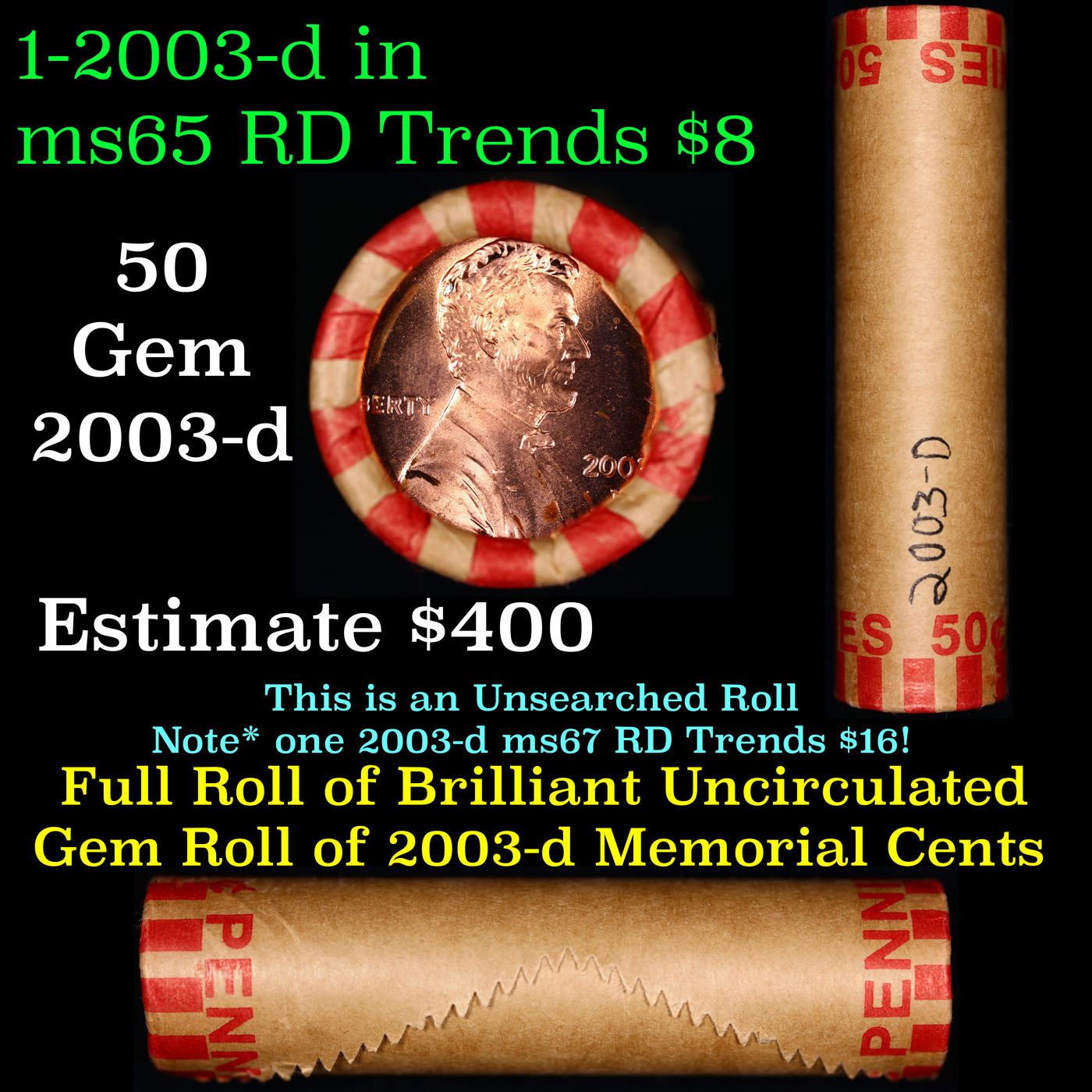 Shotgun Lincoln 1c roll, 2003-d 50 pcs Brandt Wrapper . A terrific Shotgun roll of Lincoln cents. All coins cherry red. Trends ms65 rd $8