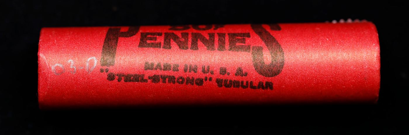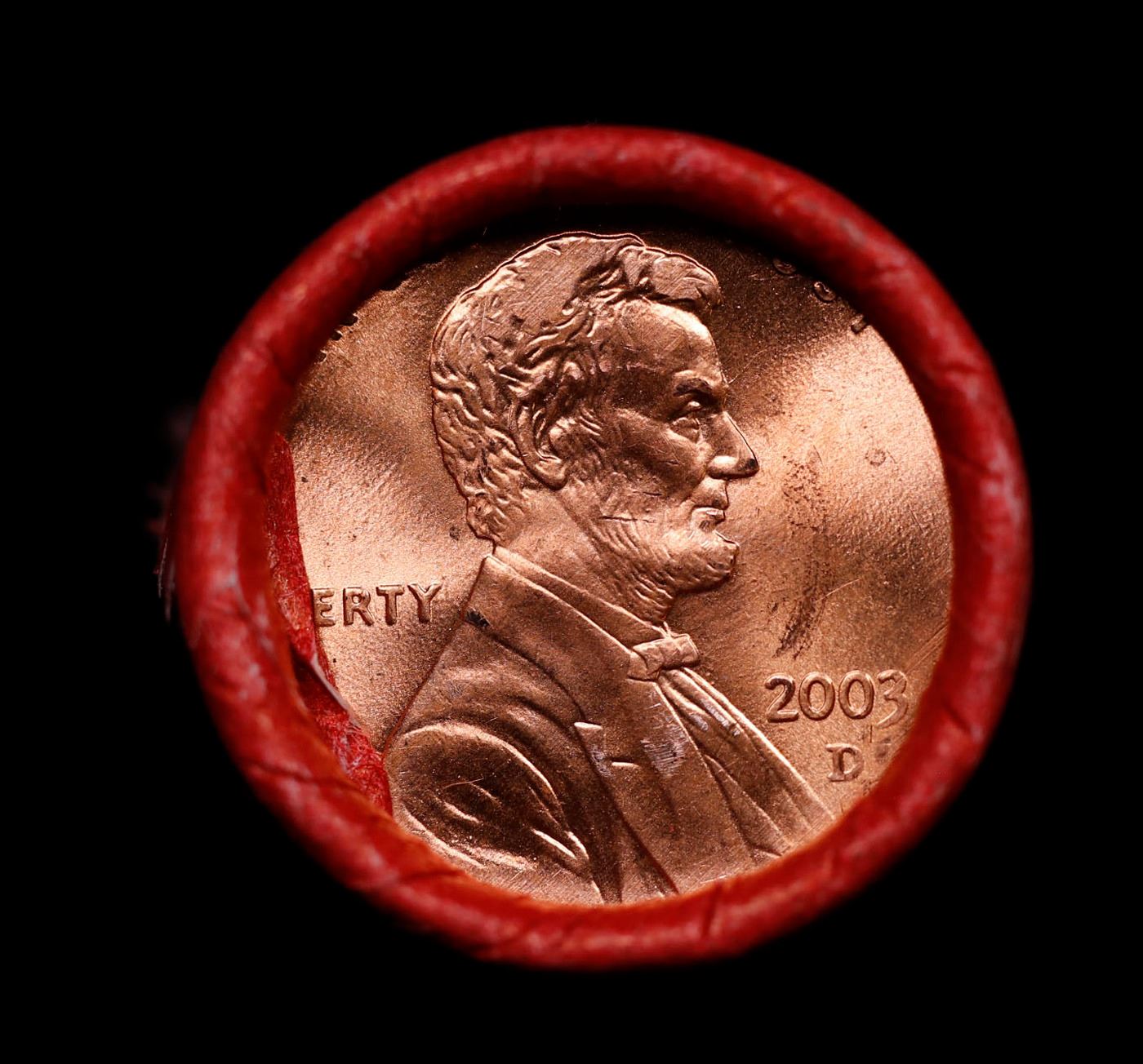 Shotgun Lincoln 1c roll, 2003-d 50 pcs Steel-Strong Wrapper.. A terrific Shotgun roll of Lincoln cents. Most if not all coin should be cherry red.
