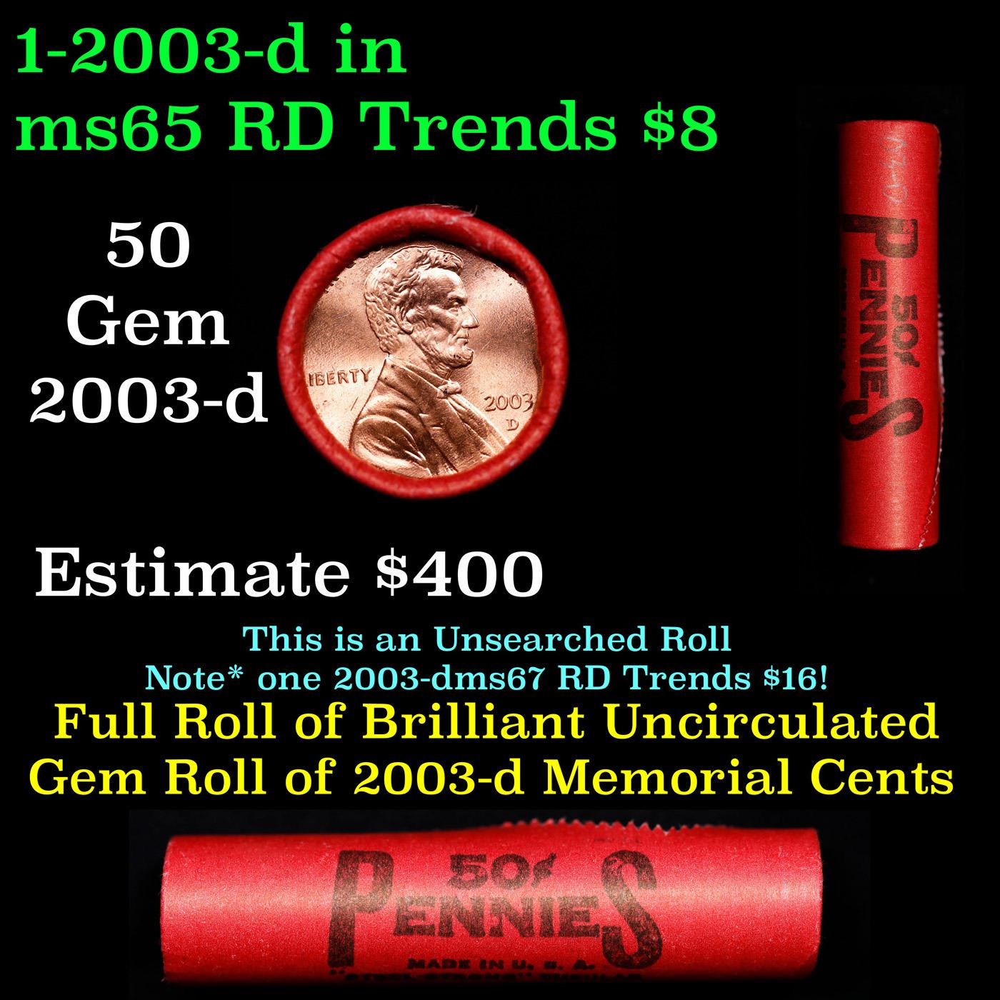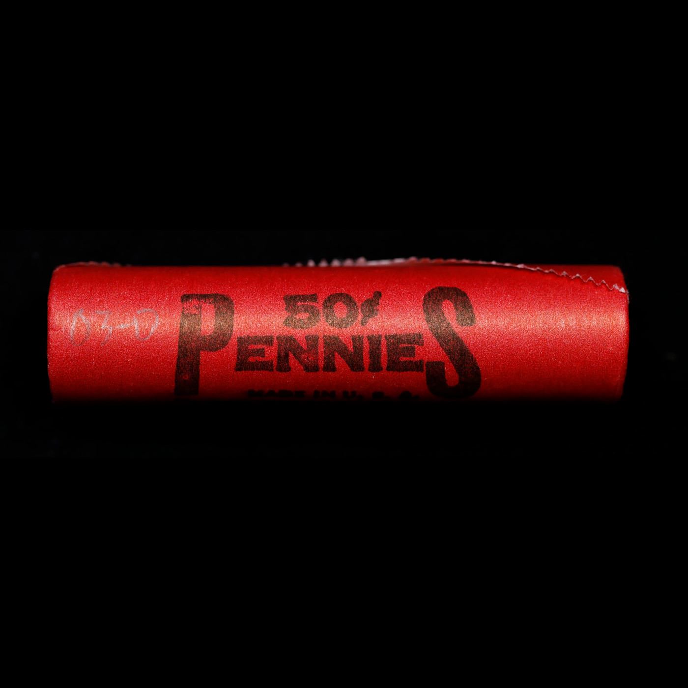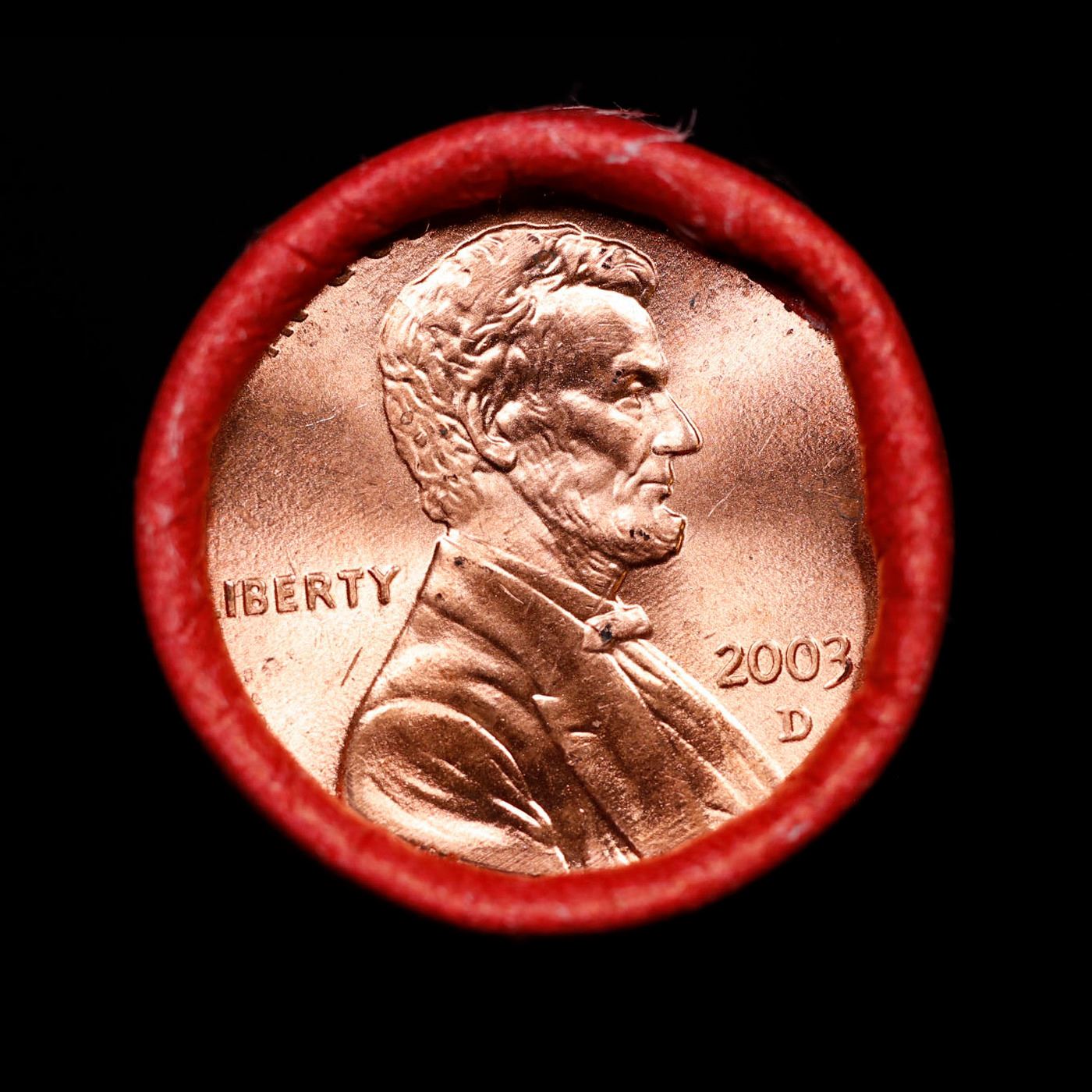 Shotgun Lincoln 1c roll, 2003-d 50 pcs Steel-Strong Wrapper.. A terrific Shotgun roll of Lincoln cents. Most if not all coin should be cherry red.