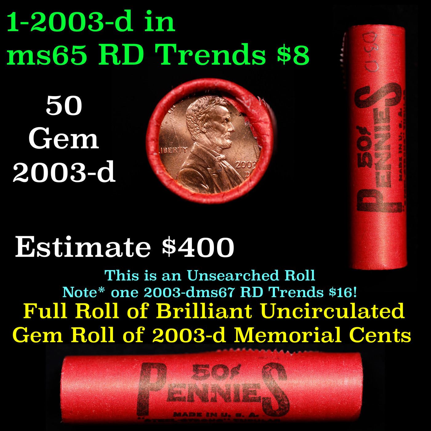 Shotgun Lincoln 1c roll, 2003-d 50 pcs Steel-Strong Wrapper.. A terrific Shotgun roll of Lincoln cents. Most if not all coin should be cherry red.