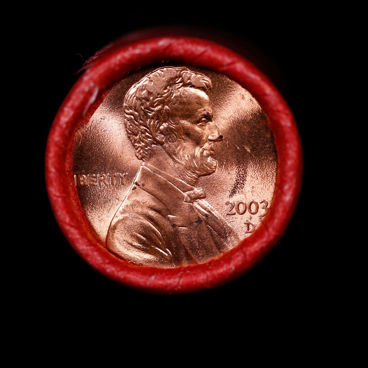 Shotgun Lincoln 1c roll, 2003-d 50 pcs Steel-Strong Wrapper.. A terrific Shotgun roll of Lincoln cents. Most if not all coin should be cherry red.