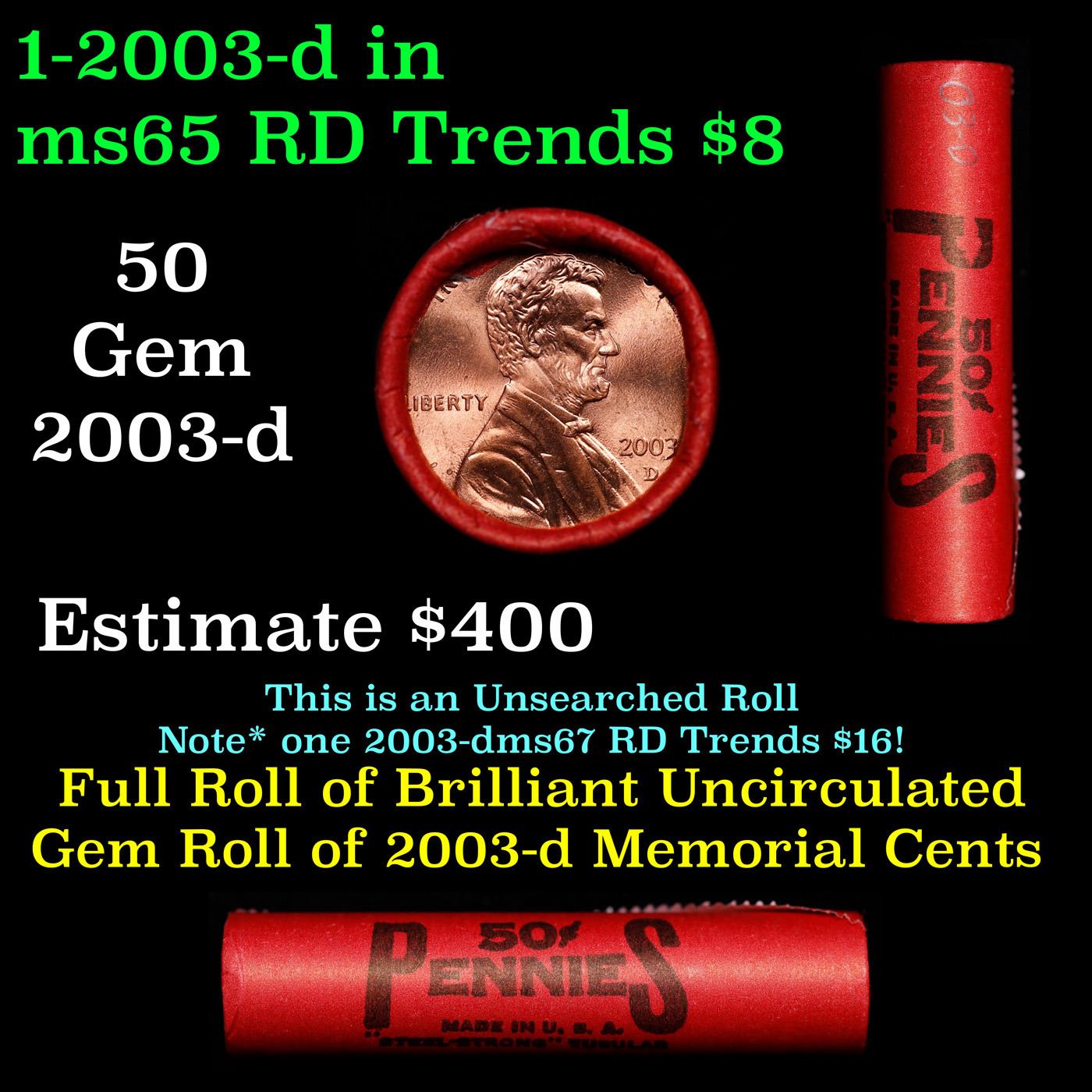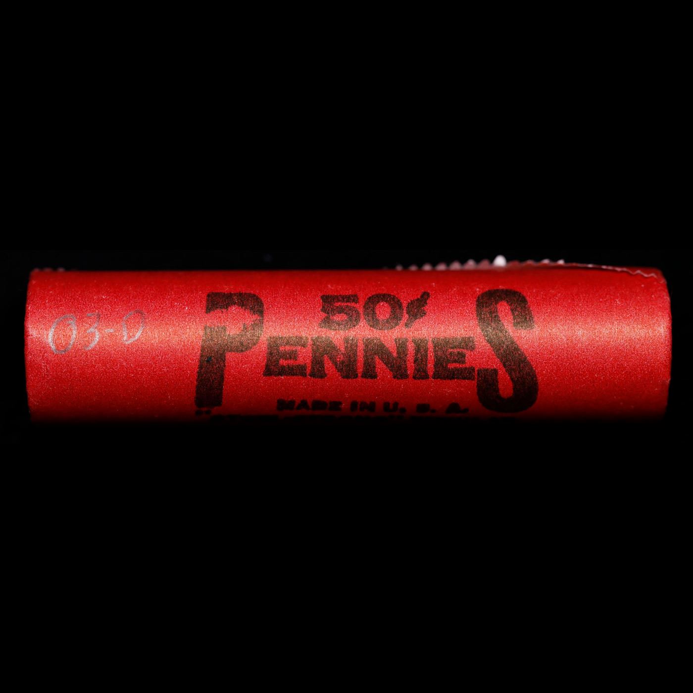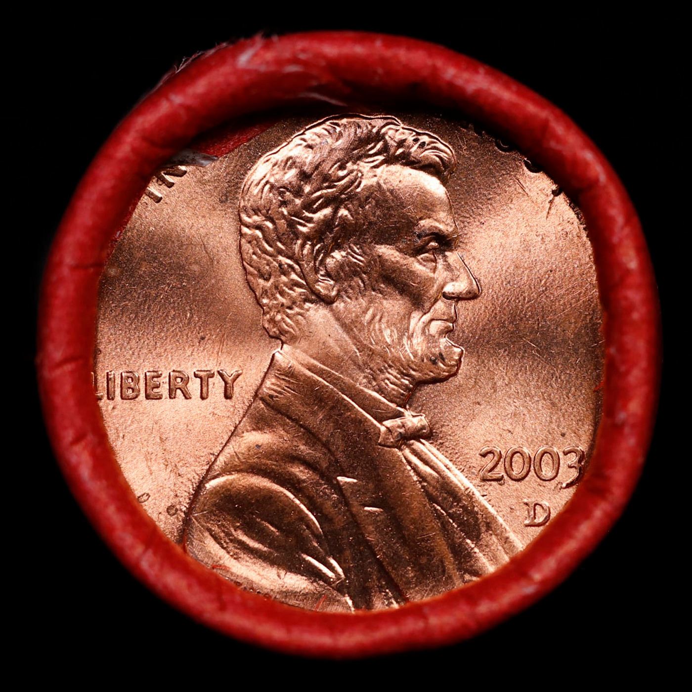 Shotgun Lincoln 1c roll, 2003-d 50 pcs Steel-Strong Wrapper.. A terrific Shotgun roll of Lincoln cents. Most if not all coin should be cherry red.