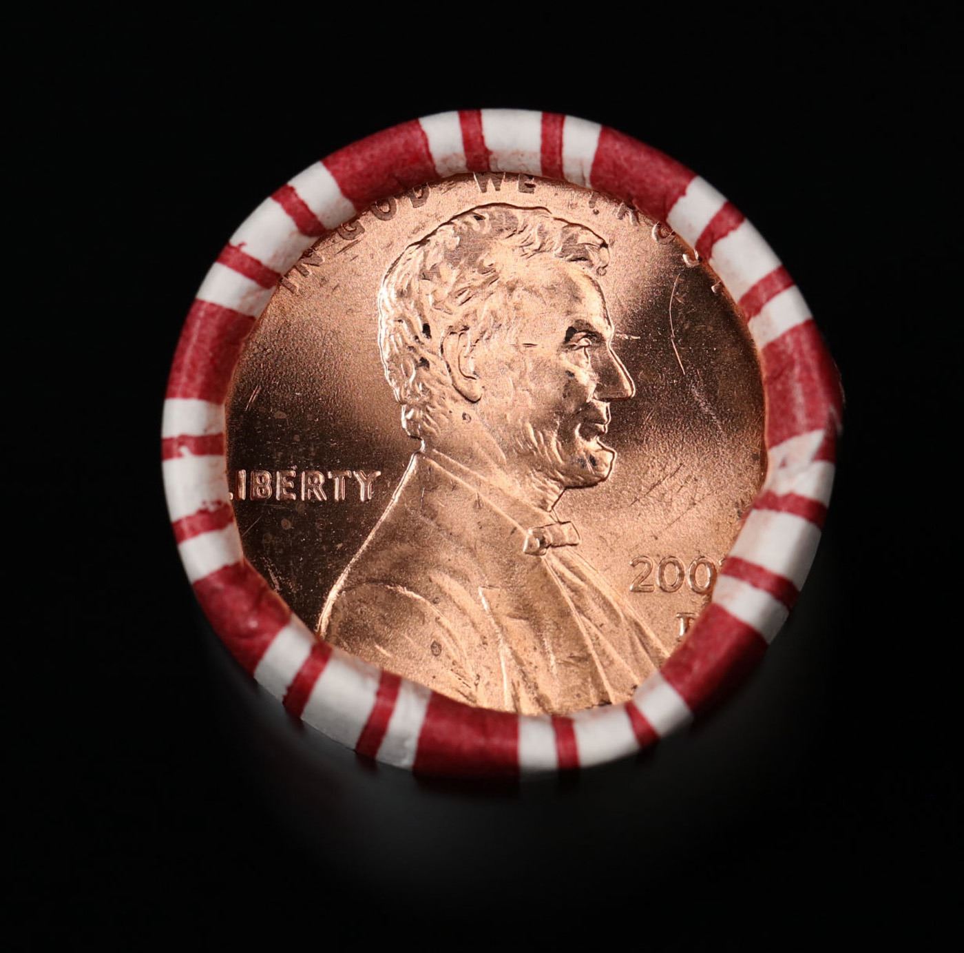 Shotgun Lincoln 1c roll, 2003-d 50 pcs Steel-Strong Wrapper.. A terrific Shotgun roll of Lincoln cents. Most if not all coin should be cherry red.