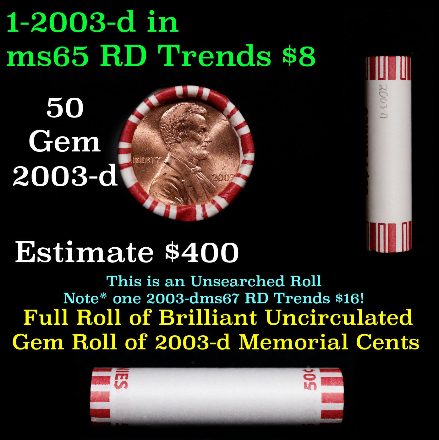 Shotgun Lincoln 1c roll, 2003-d 50 pcs Steel-Strong Wrapper.. A terrific Shotgun roll of Lincoln cents. Most if not all coin should be cherry red.