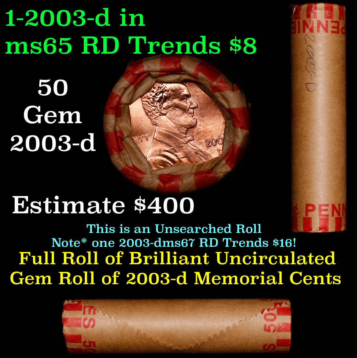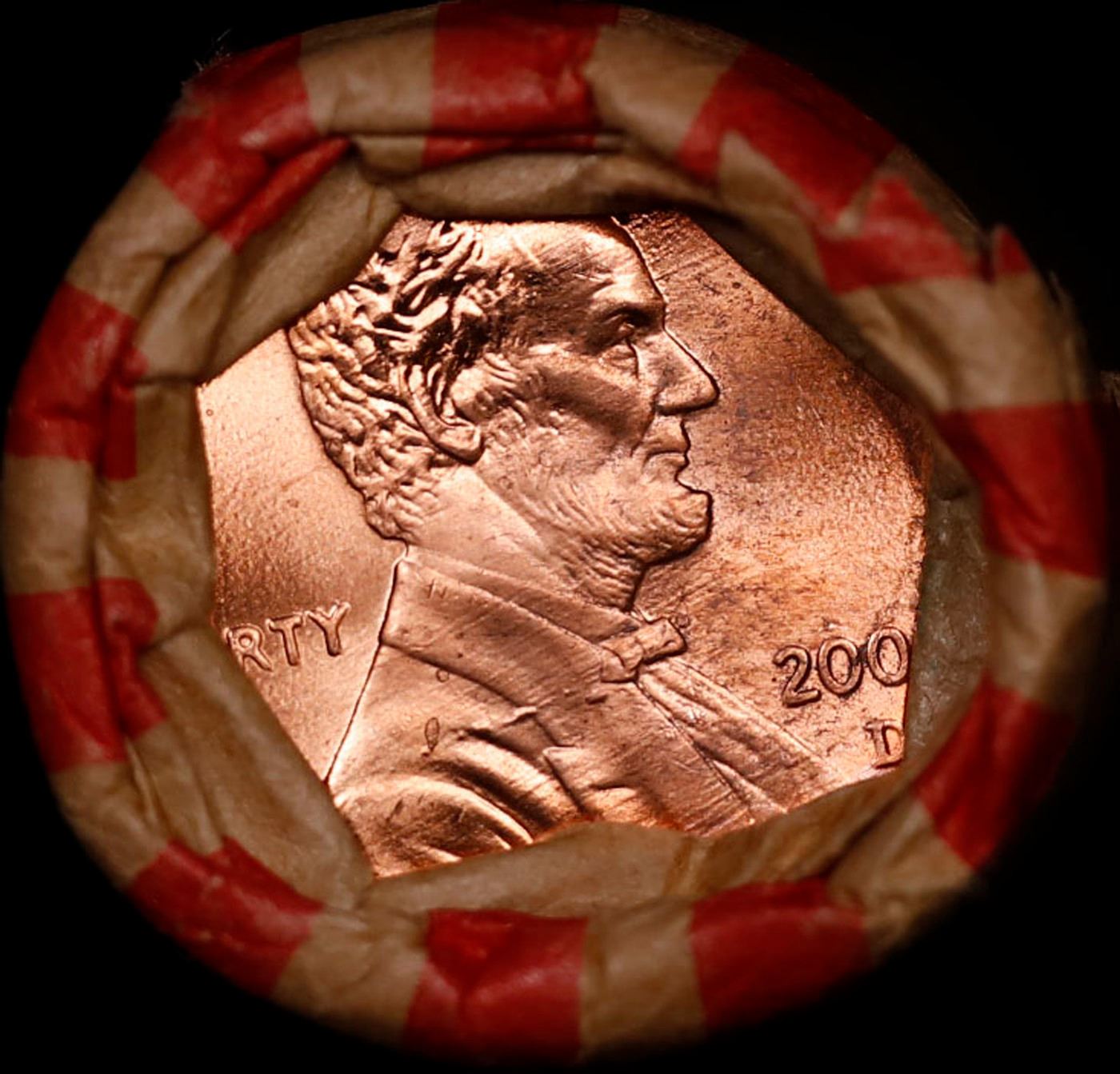Shotgun Lincoln 1c roll, 2003-d 50 pcs Vintage Wrapper.. A terrific Shotgun roll of Lincoln cents. Most if not all coin should be cherry red.