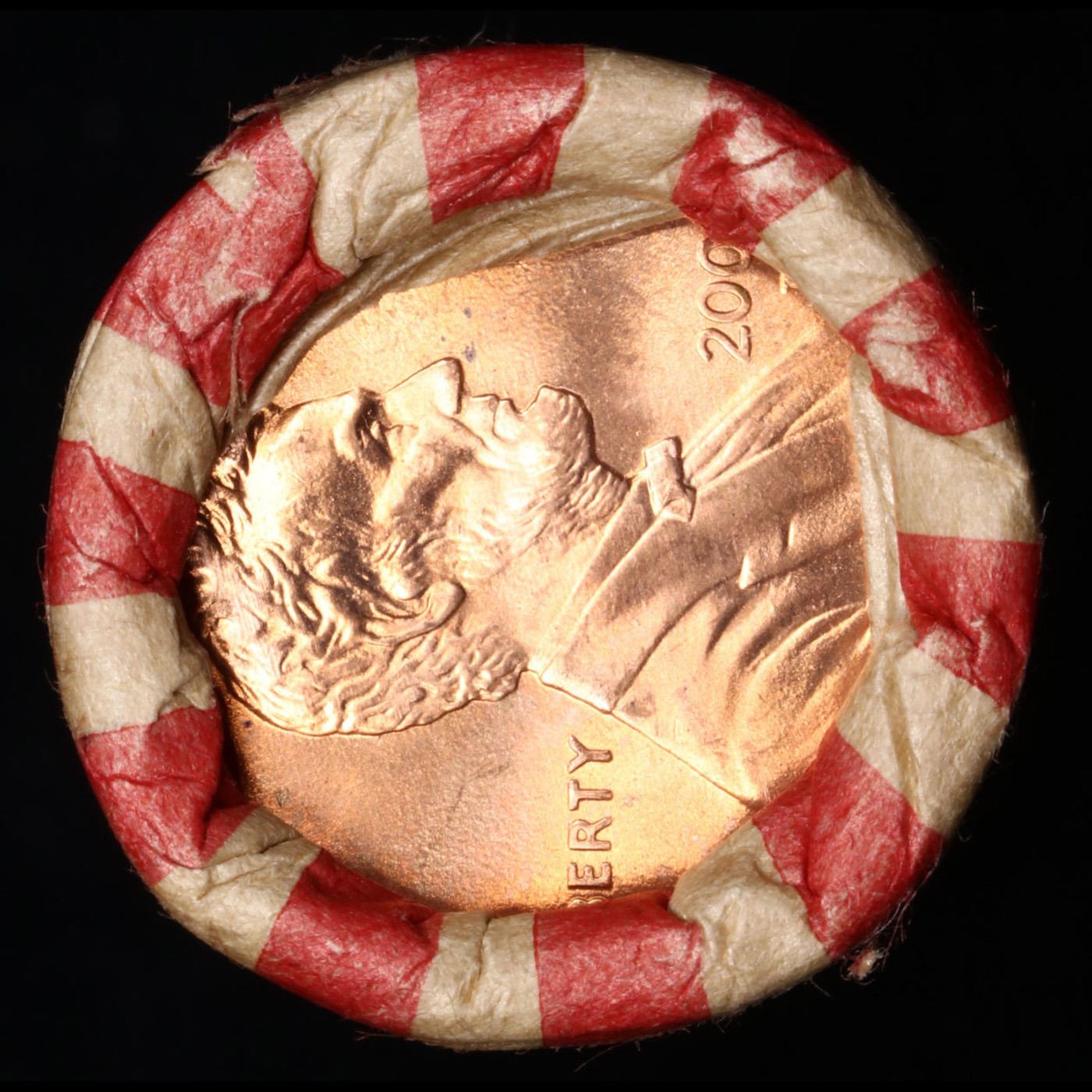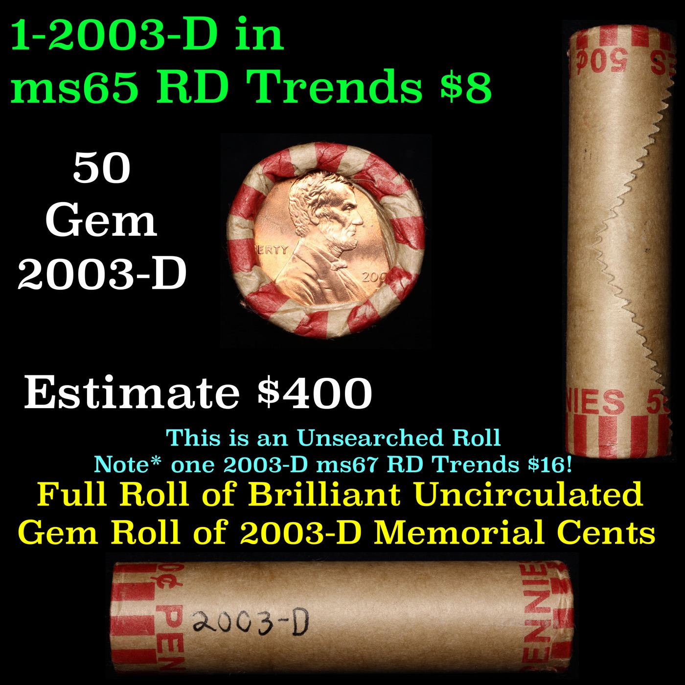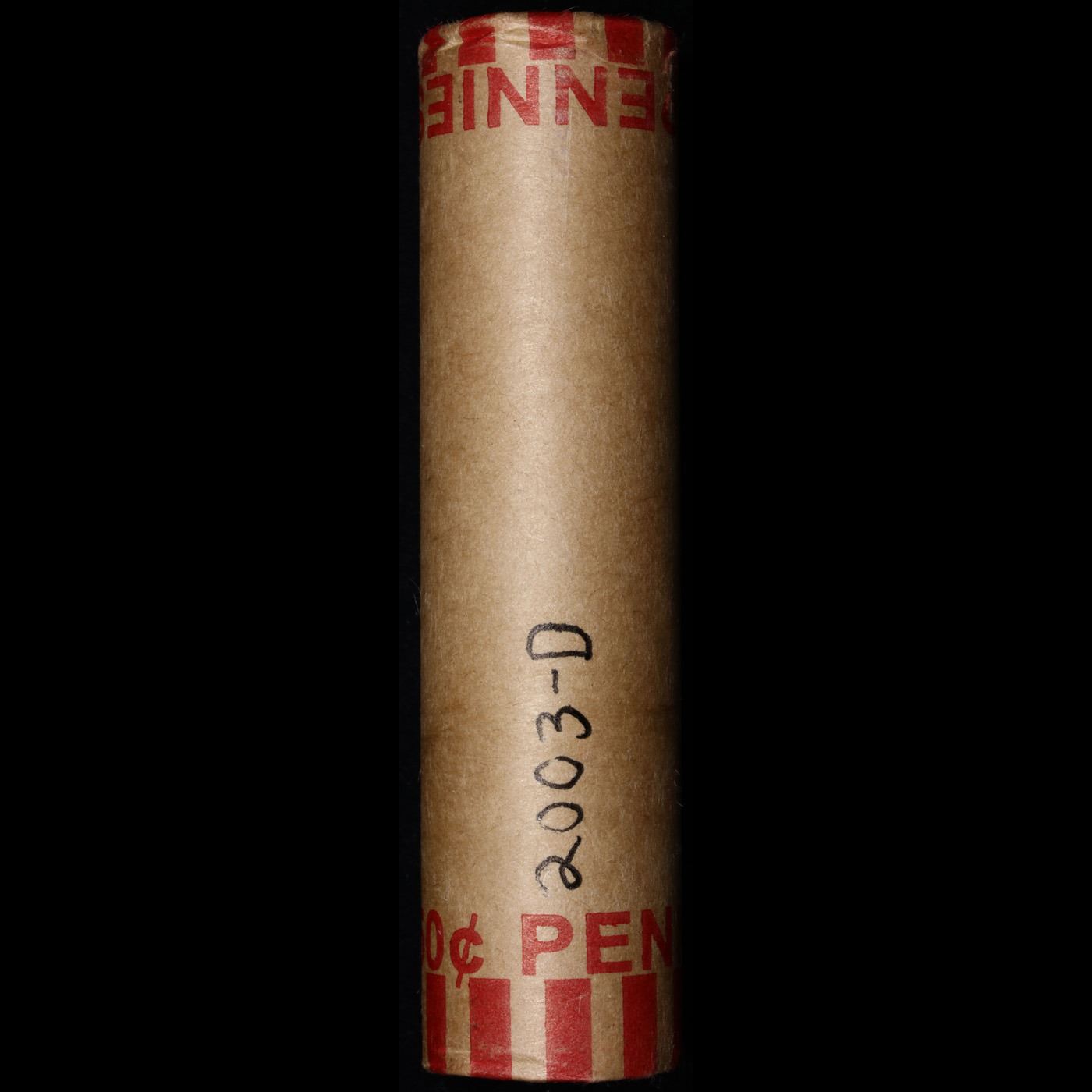 Shotgun Lincoln 1c roll, 2003-d 50 pcs Wrapper . A terrific Shotgun roll of Lincoln cents. All coins cherry red. Trends ms65 rd $8