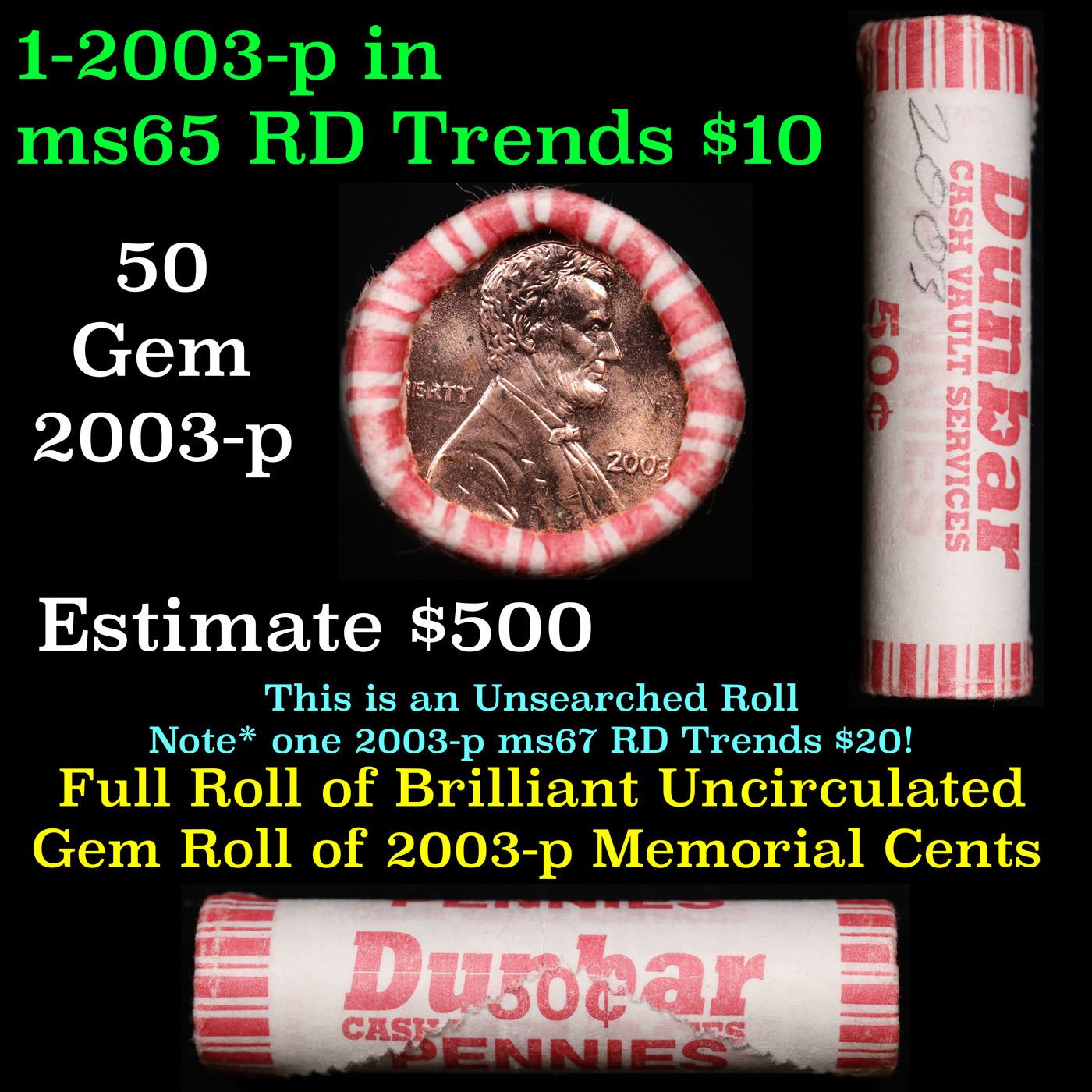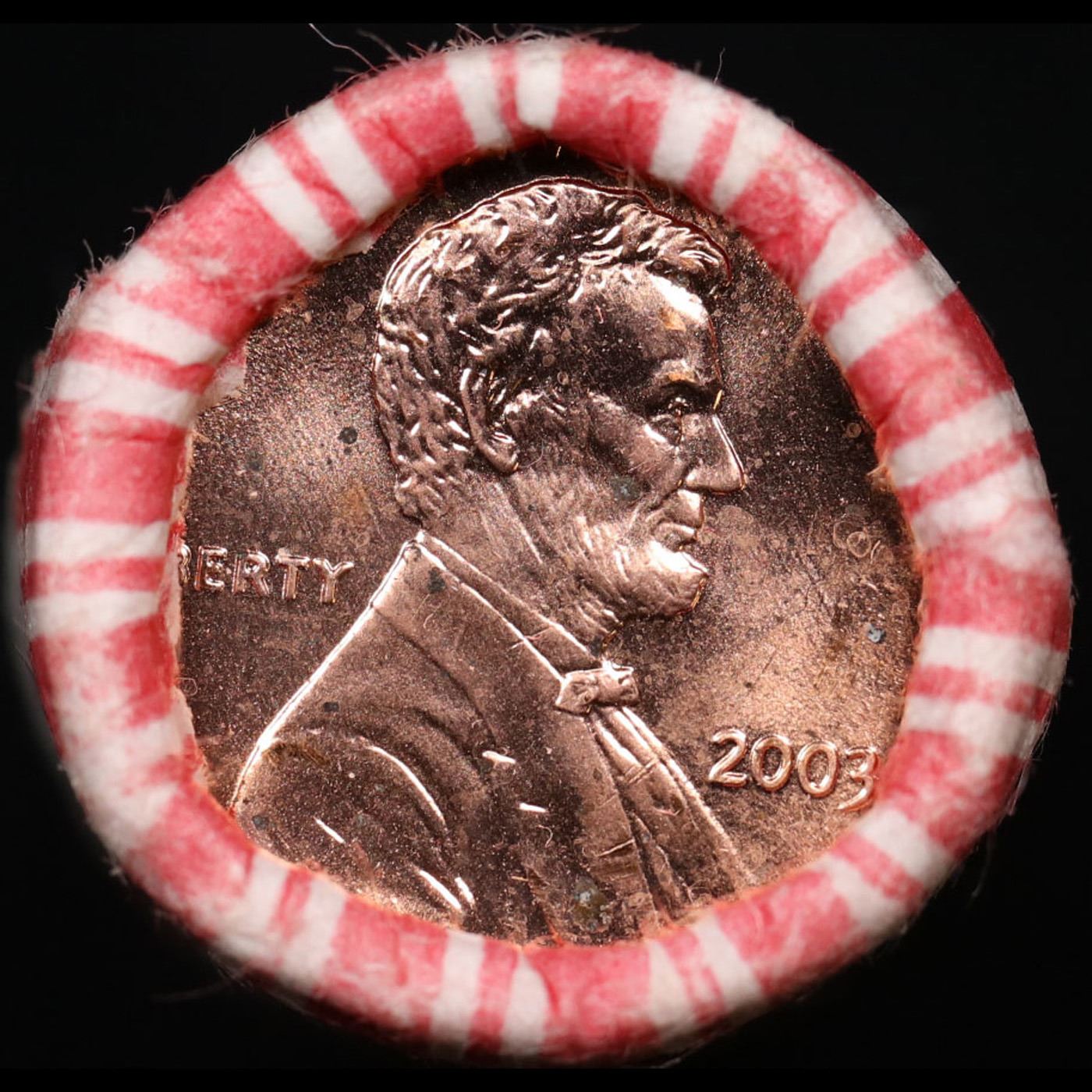 Shotgun Lincoln 1c roll, 2003-p 50 pcs Bank Wrapper.. A terrific Shotgun roll of Lincoln cents. Most if not all coin should be cherry red.