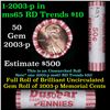 Shotgun Lincoln 1c roll, 2003-p 50 pcs Dunbar Wrapper .