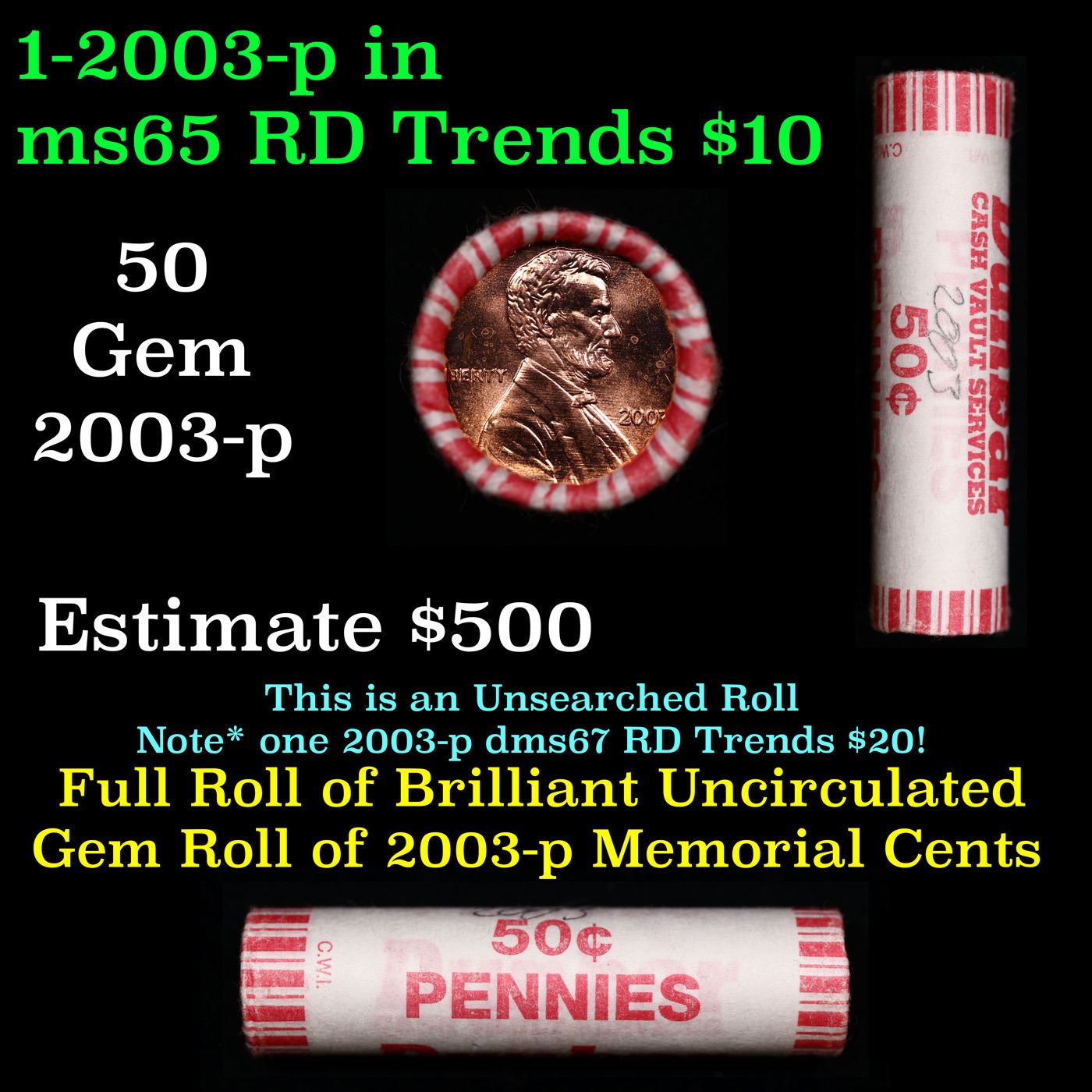 Shotgun Lincoln 1c roll, 2003-p 50 pcs Dunbar Wrapper.. A terrific Shotgun roll of Lincoln cents. Most if not all coin should be cherry red.