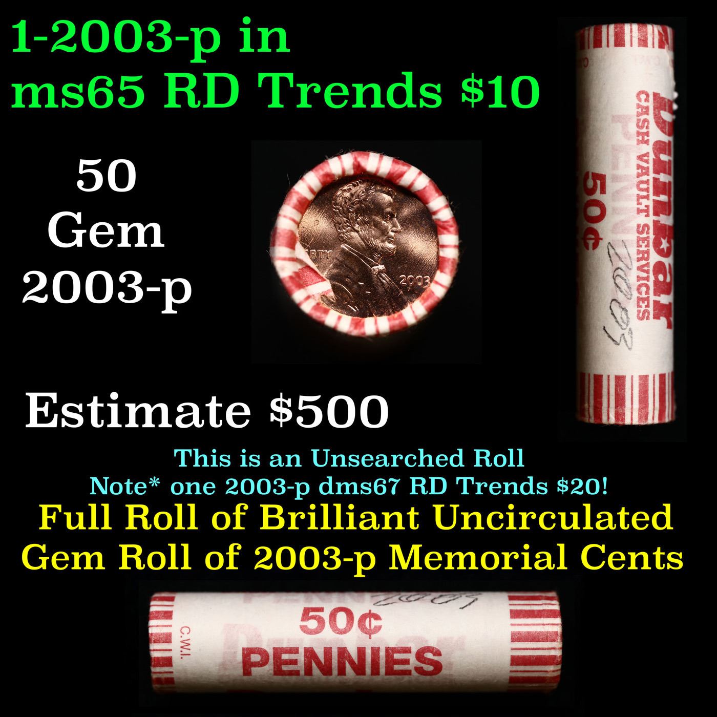Shotgun Lincoln 1c roll, 2003-p 50 pcs Dunbar Wrapper.. A terrific Shotgun roll of Lincoln cents. Most if not all coin should be cherry red.