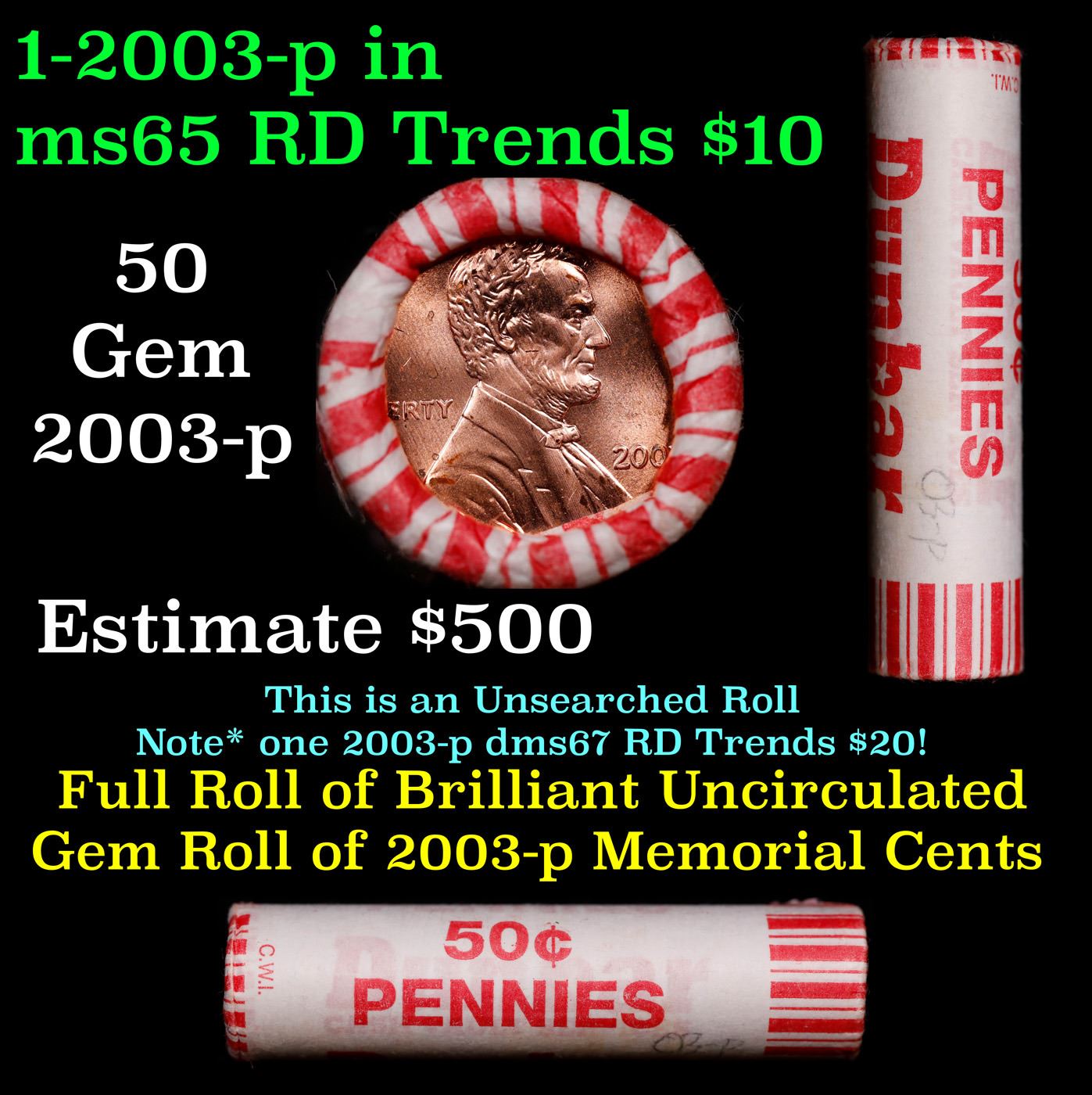 Shotgun Lincoln 1c roll, 2003-p 50 pcs Dunbar Wrapper.. A terrific Shotgun roll of Lincoln cents. Most if not all coin should be cherry red.