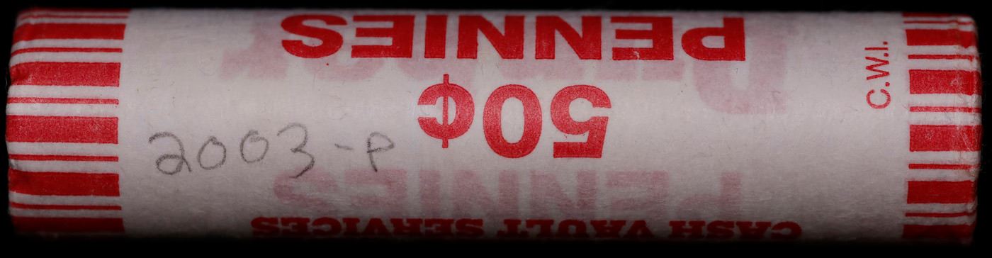 Shotgun Lincoln 1c roll, 2003-p 50 pcs Dunbar Wrapper.. A terrific Shotgun roll of Lincoln cents. Most if not all coin should be cherry red.