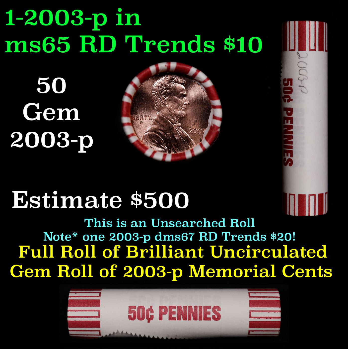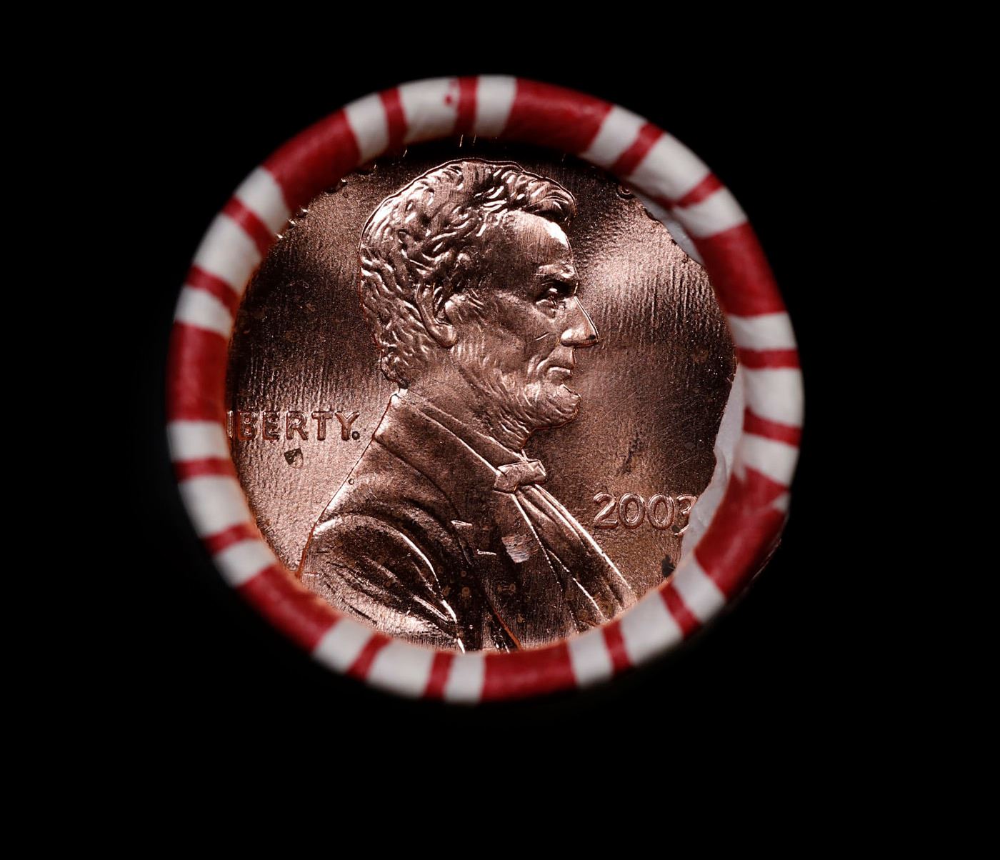 Shotgun Lincoln 1c roll, 2003-p 50 pcs Steel-Strong Wrapper.. A terrific Shotgun roll of Lincoln cents. Most if not all coin should be cherry red.