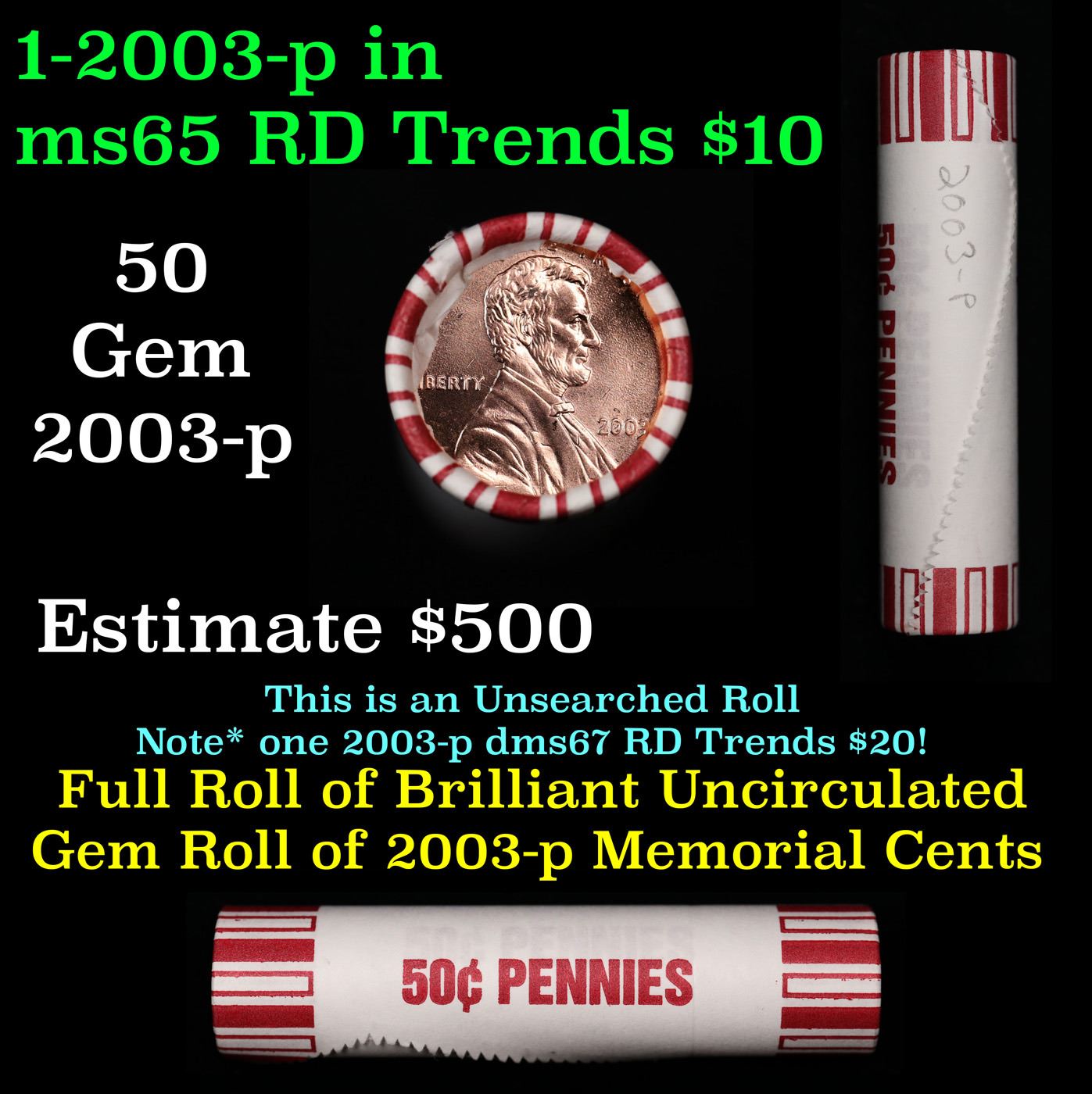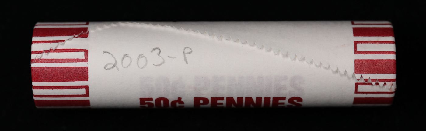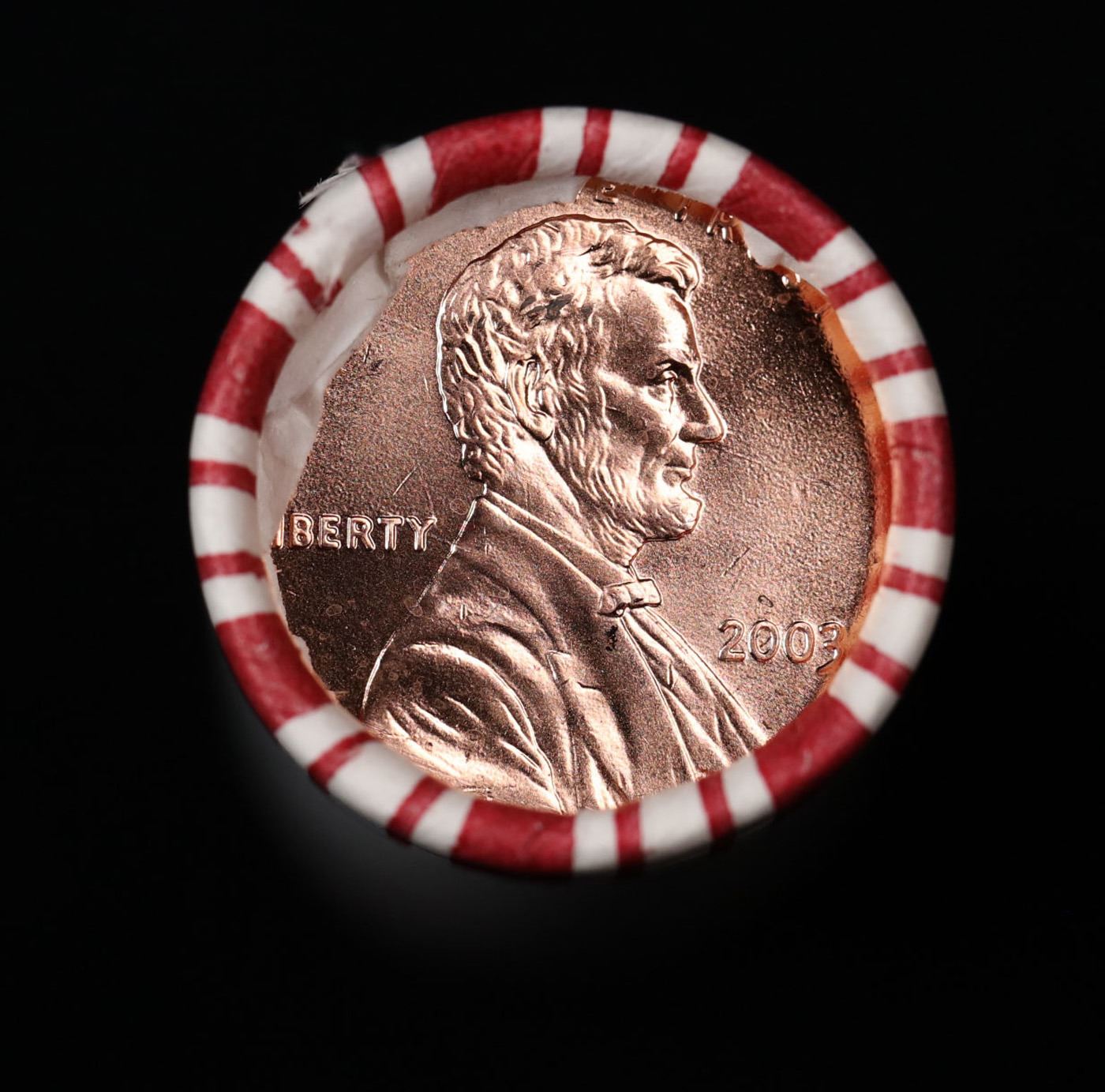 Shotgun Lincoln 1c roll, 2003-p 50 pcs Steel-Strong Wrapper.. A terrific Shotgun roll of Lincoln cents. Most if not all coin should be cherry red.