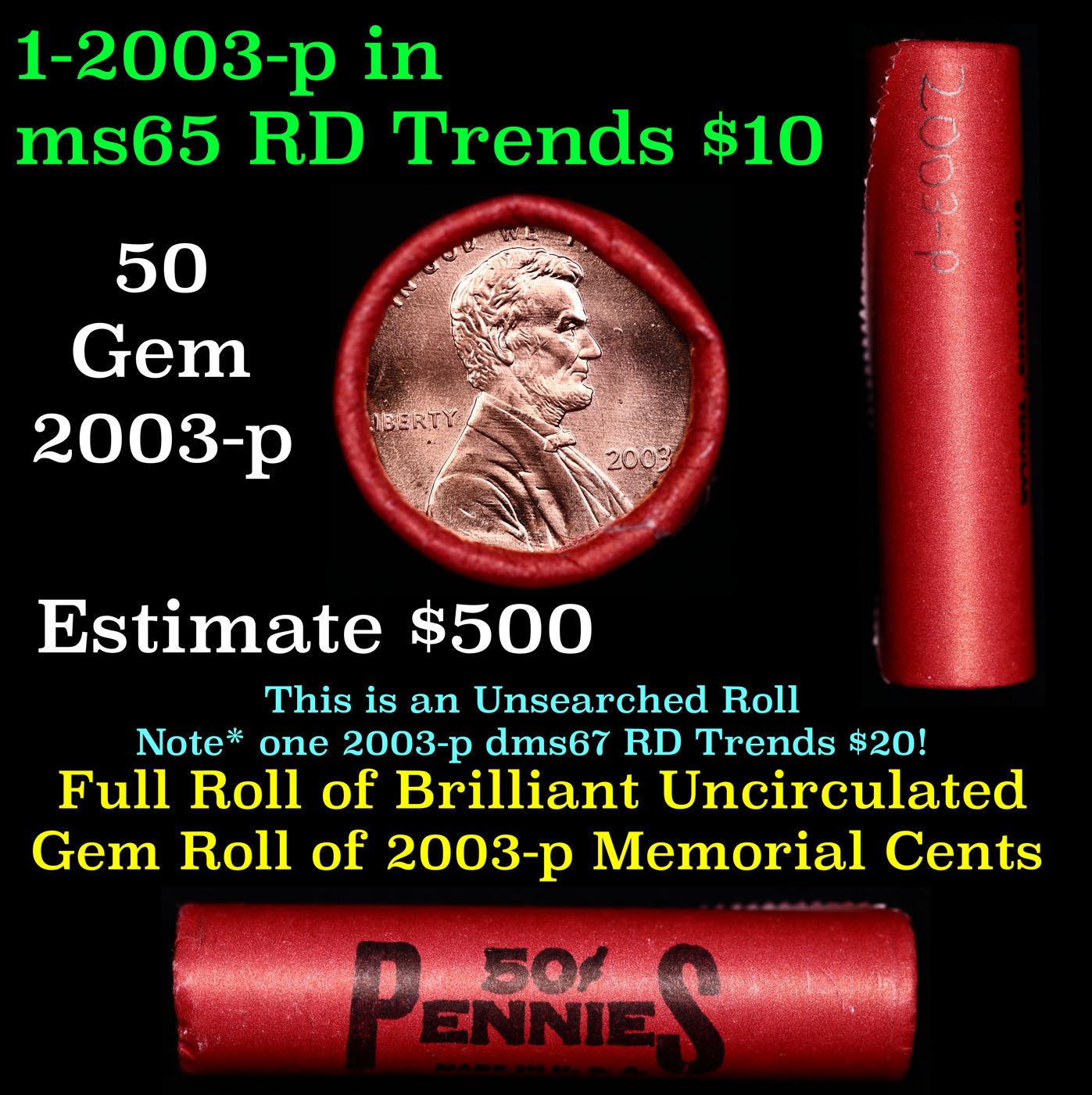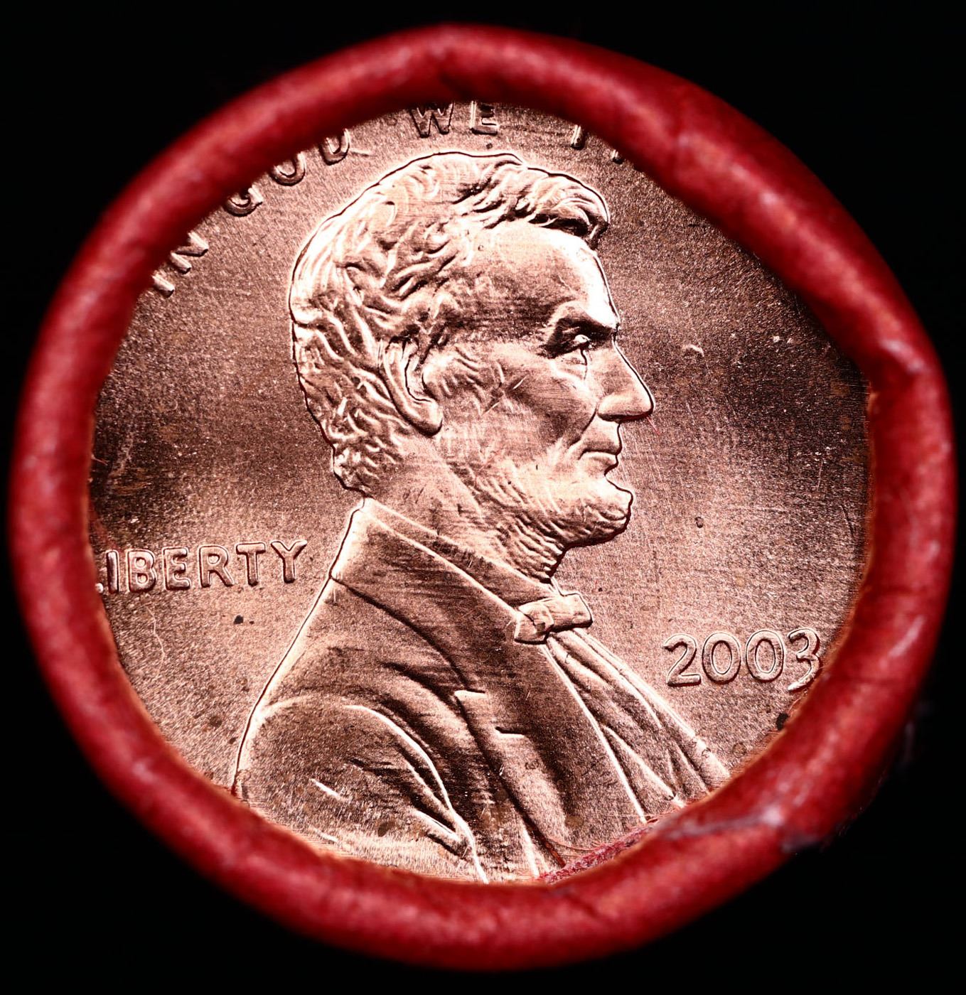 Shotgun Lincoln 1c roll, 2003-p 50 pcs Steel Strong Wrapper.. A terrific Shotgun roll of Lincoln cents. Most if not all coin should be cherry red.