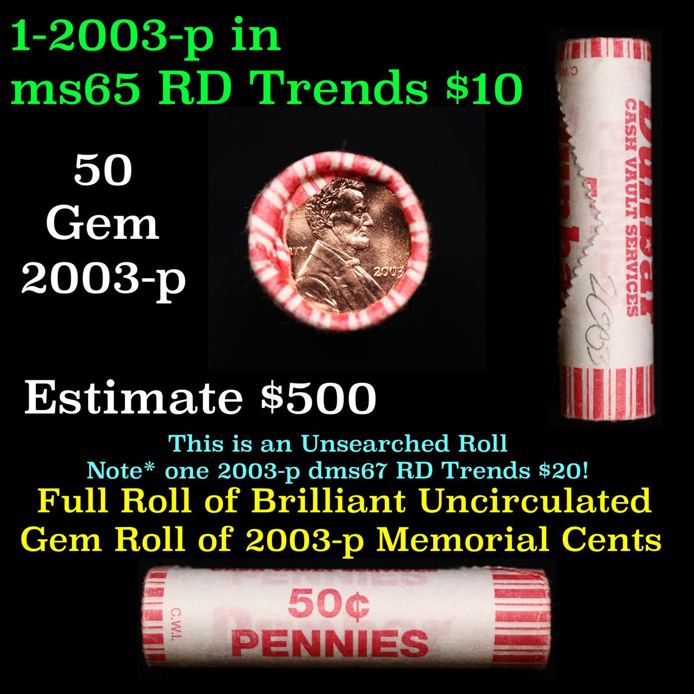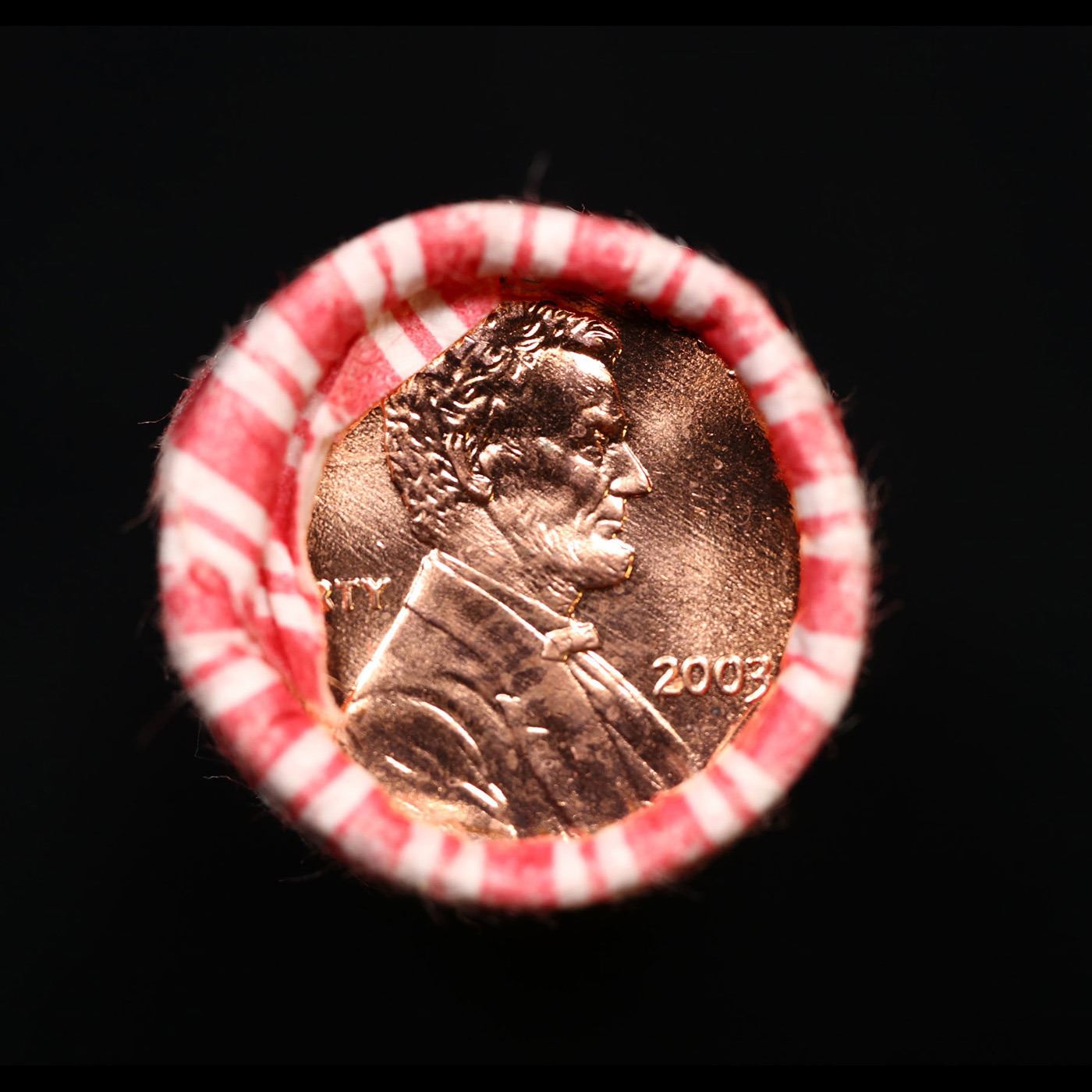 Shotgun Lincoln 1c roll, 2003-p 50 pcs Vault Services Wrapper.. A terrific Shotgun roll of Lincoln cents. Most if not all coin should be cherry red.