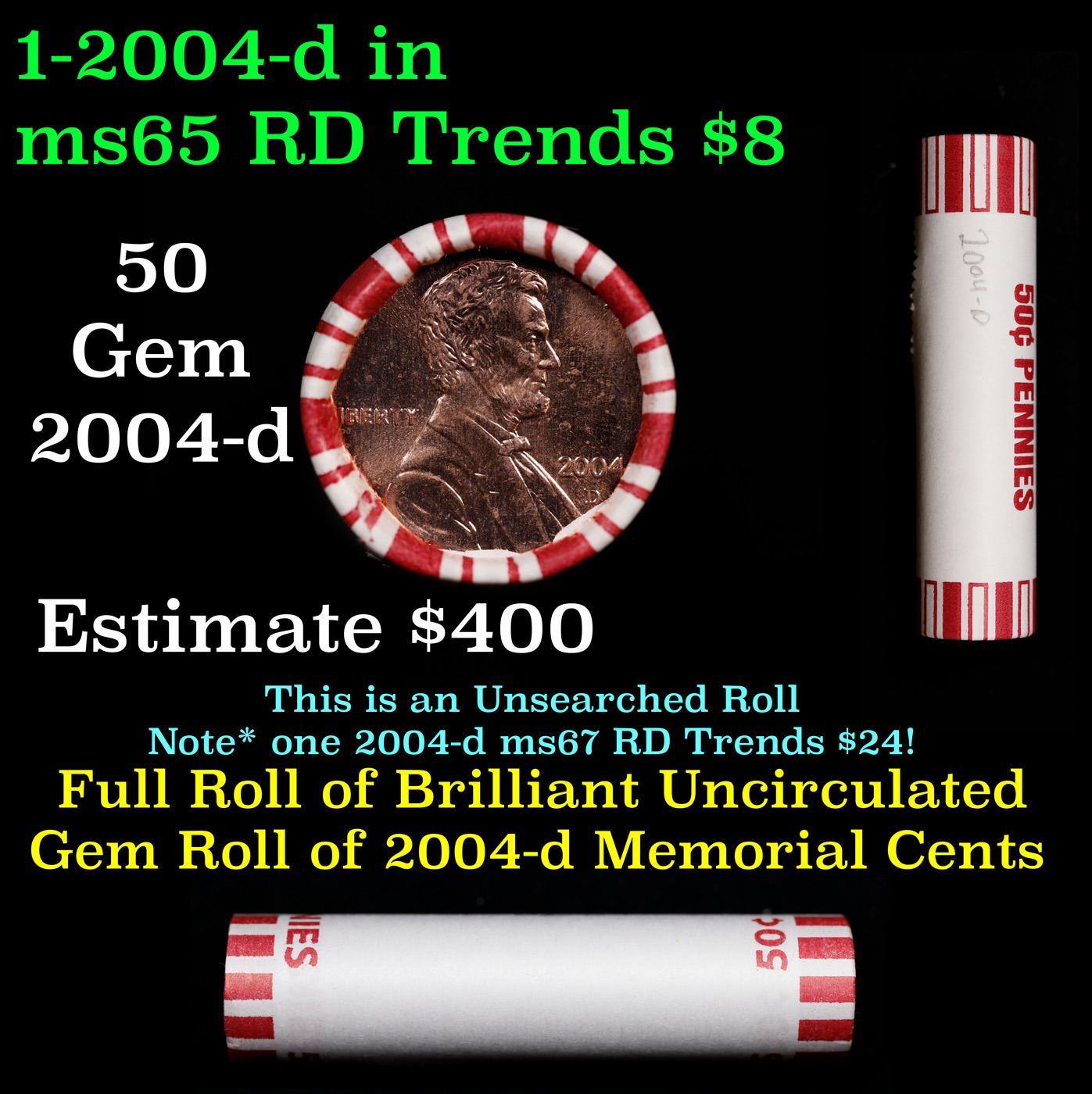 Shotgun Lincoln 1c roll, 2004-d 50 pcs Steel-Strong Wrapper.. A terrific Shotgun roll of Lincoln cents. Most if not all coin should be cherry red.