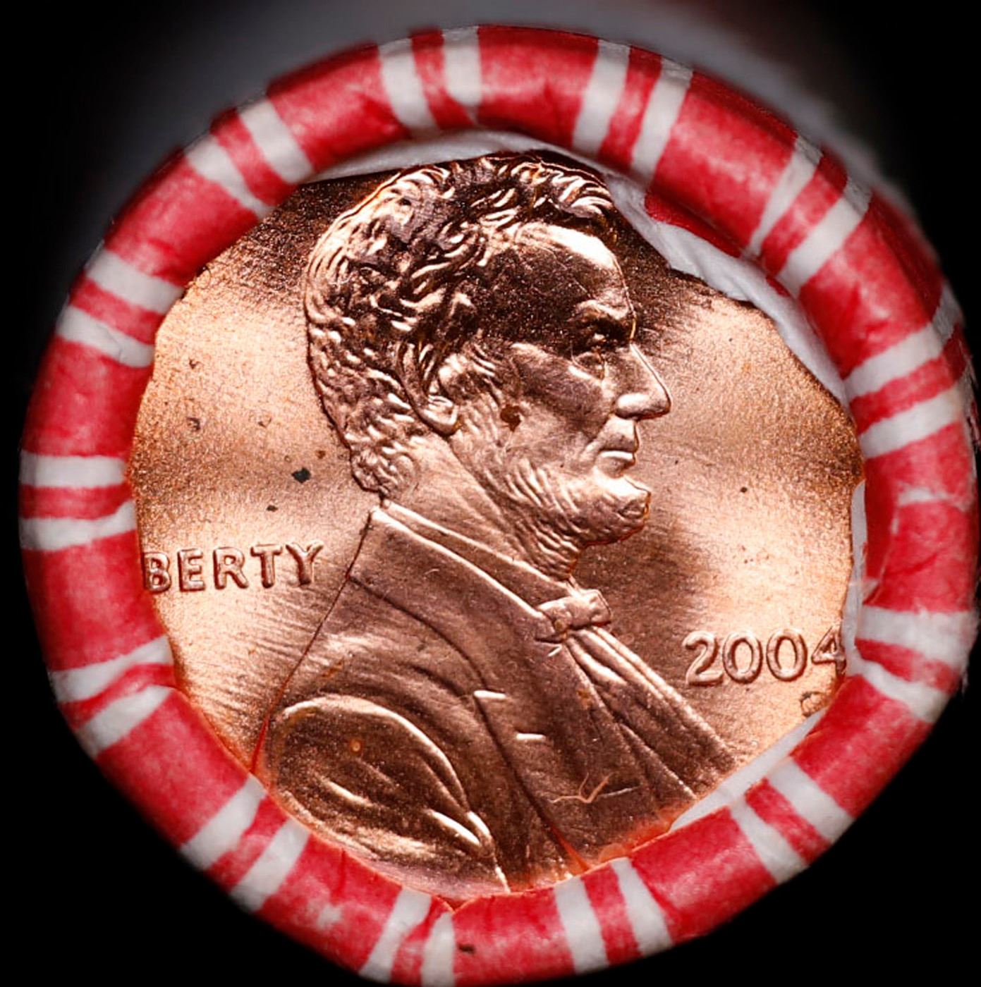 Shotgun Lincoln 1c roll, 2004-p 50 pcs Bank Wrapper.. A terrific Shotgun roll of Lincoln cents. Most if not all coin should be cherry red.