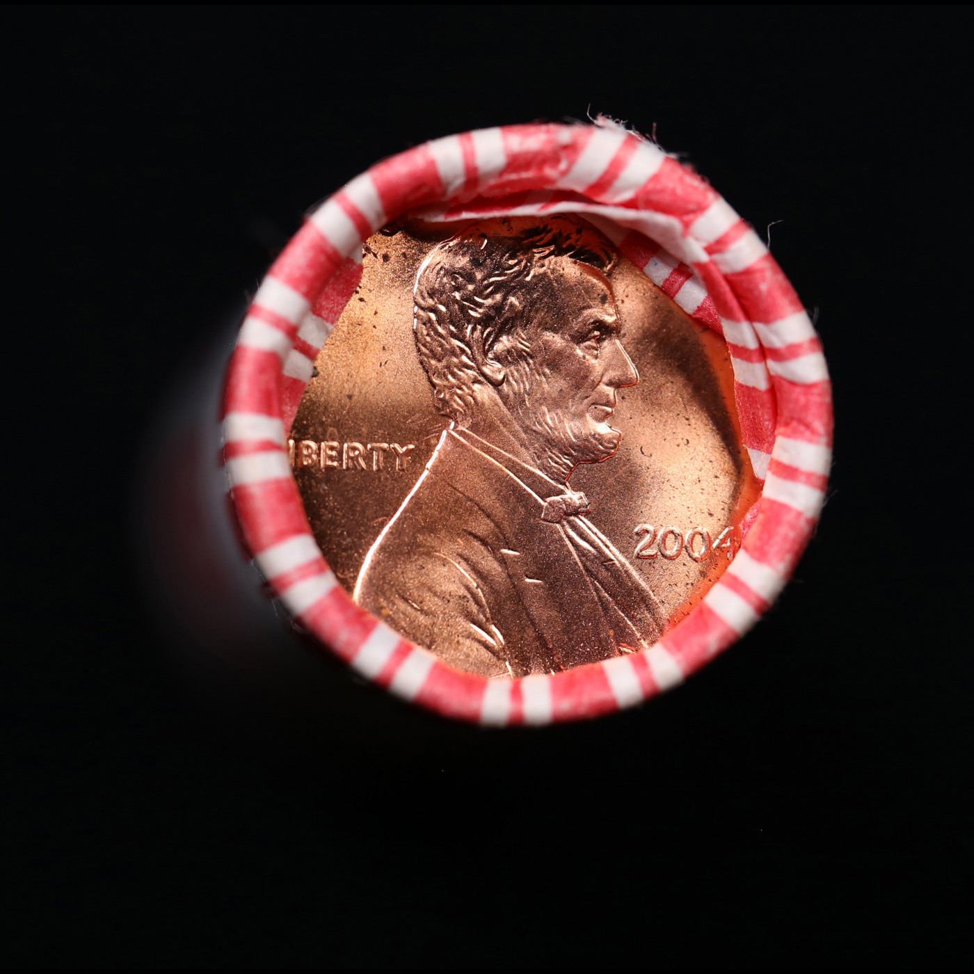 Shotgun Lincoln 1c roll, 2004-p 50 pcs N.F String & Son Wrapper.. A terrific Shotgun roll of Lincoln cents. Most if not all coin should be cherry red. Trends ms65 rd $10