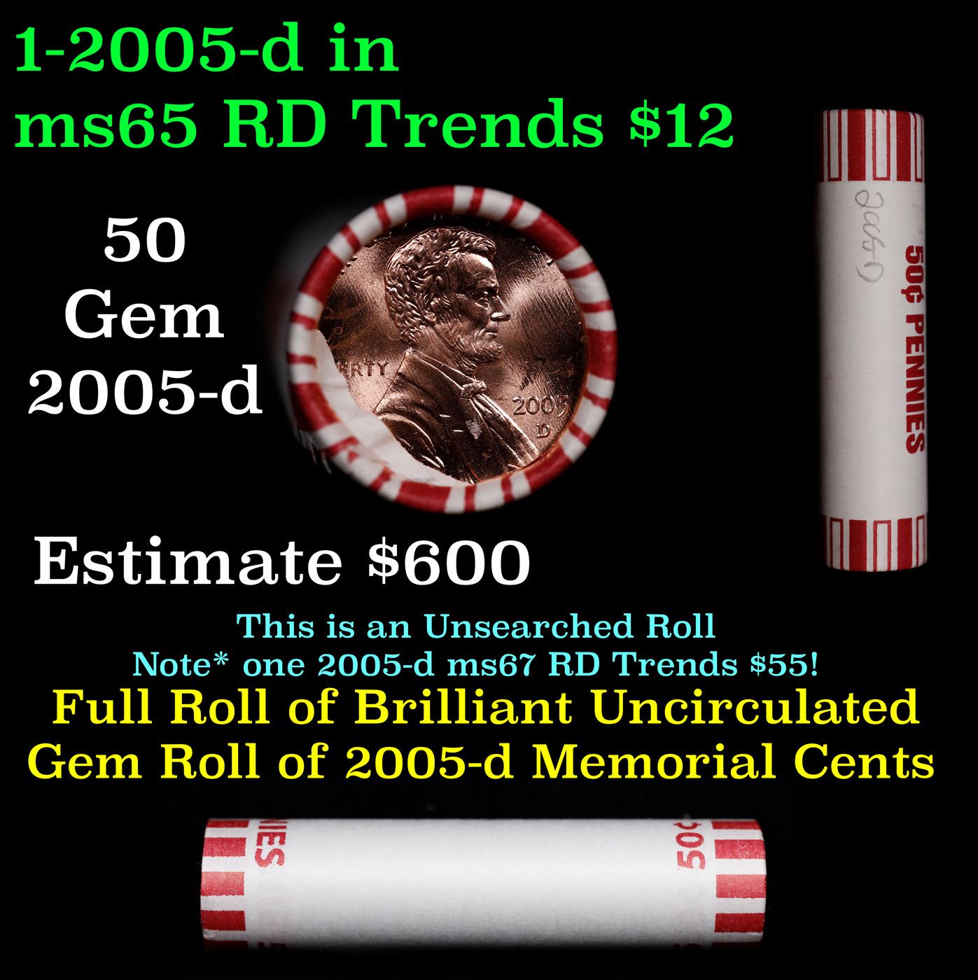 Shotgun Lincoln 1c roll, 2005-d 50 pcs Steel-Strong Wrapper.. A terrific Shotgun roll of Lincoln cents. Most if not all coin should be cherry red.