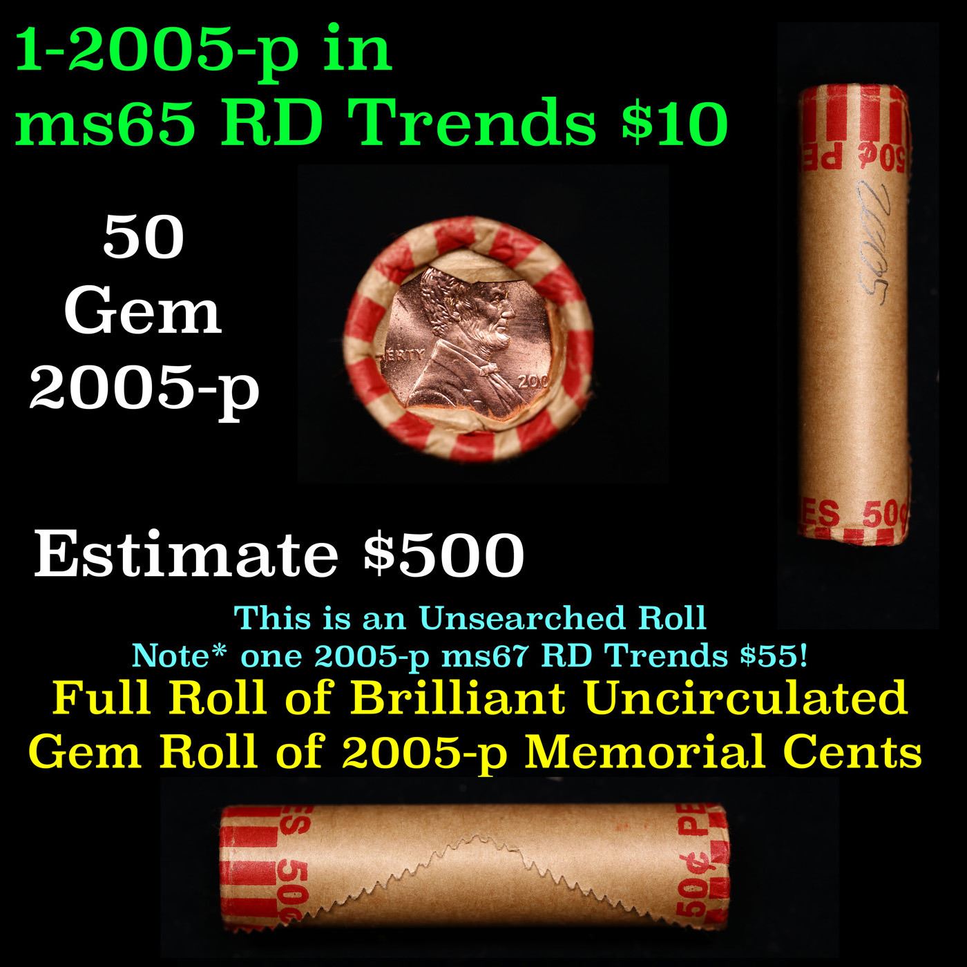 Shotgun Lincoln 1c roll, 2005-p 50 pcs Brandt Wrapper.. A terrific Shotgun roll of Lincoln cents. Most if not all coin should be cherry red.