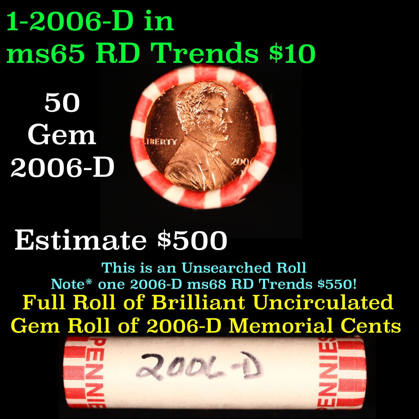 Shotgun Lincoln 1c roll, 2006-d 50 pcs N.F String & Son Wrapper . A terrific Shotgun roll of Lincoln cents. All coins cherry red. Trends ms65 rd $16