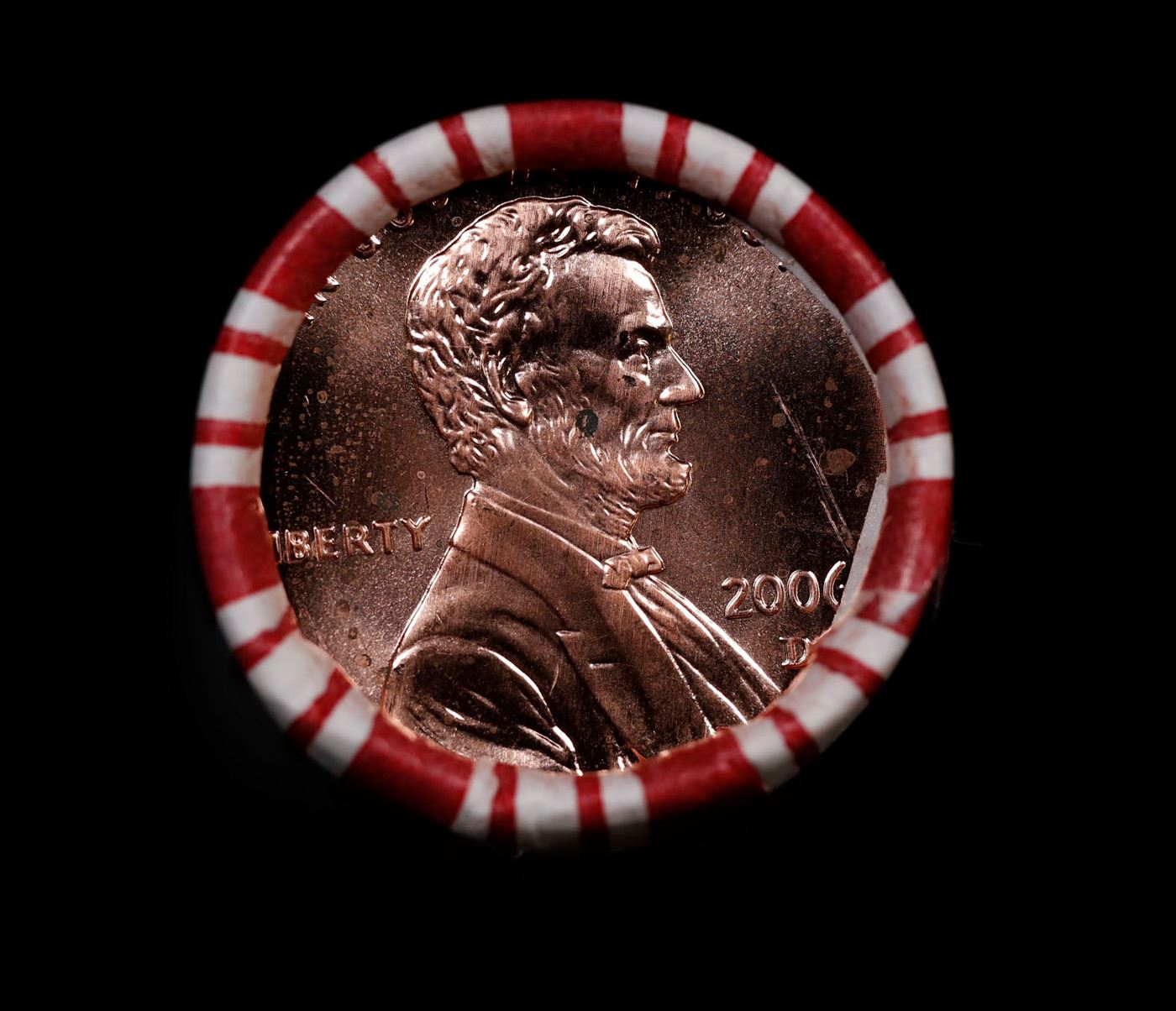 Shotgun Lincoln 1c roll, 2006-d 50 pcs Steel-Strong Wrapper.. A terrific Shotgun roll of Lincoln cents. Most if not all coin should be cherry red.