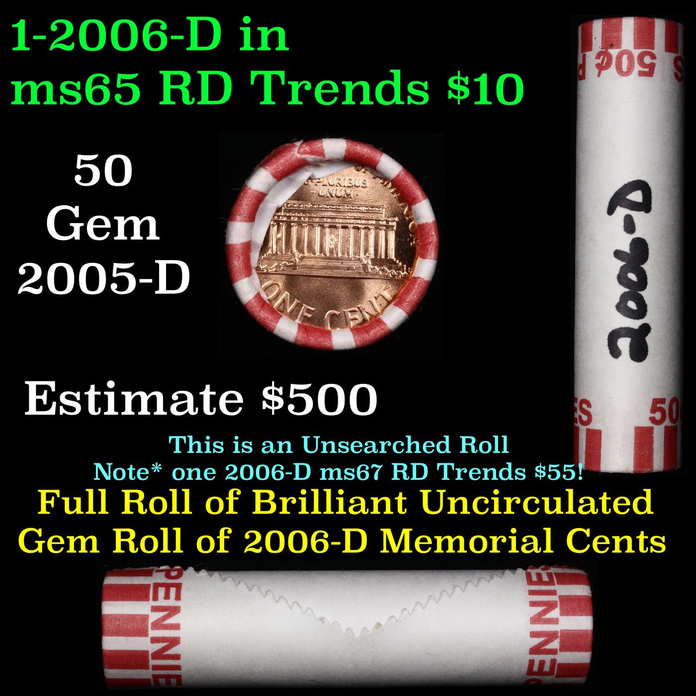 Shotgun Lincoln 1c roll, 2006-d 50 pcs Wrapper . A terrific Shotgun roll of Lincoln cents. All coins cherry red. Trends ms65 rd $10