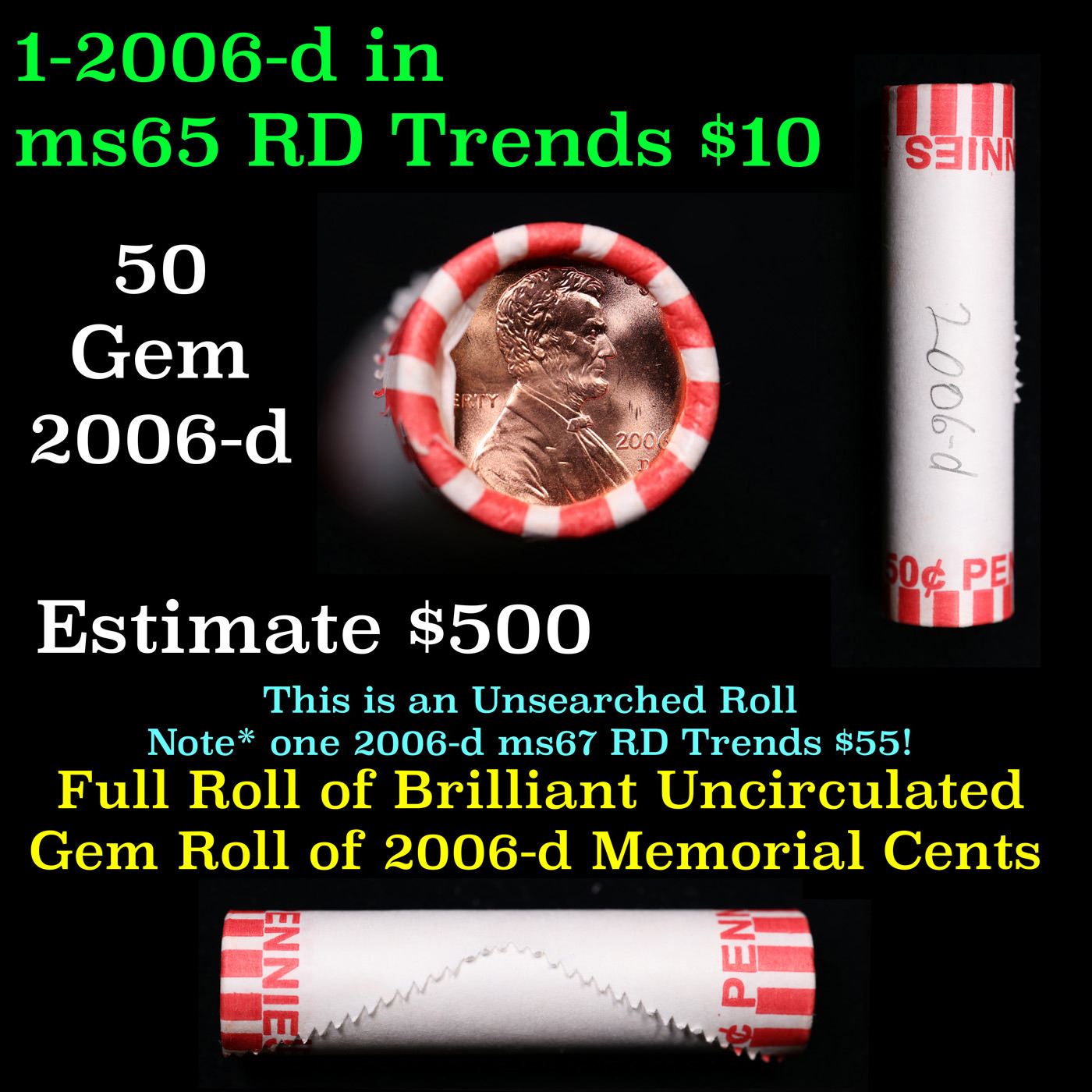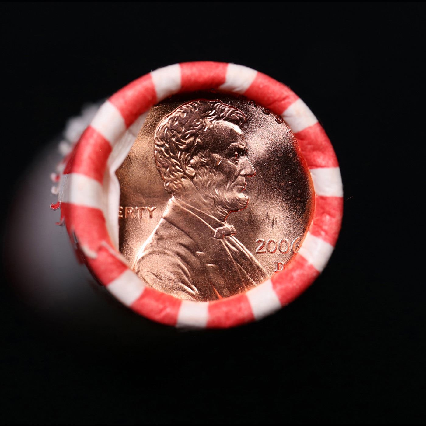 Shotgun Lincoln 1c roll, 2006-d 50 pcs Wrapper.. A terrific Shotgun roll of Lincoln cents. Most if not all coin should be cherry red. Trends ms65 rd $10
