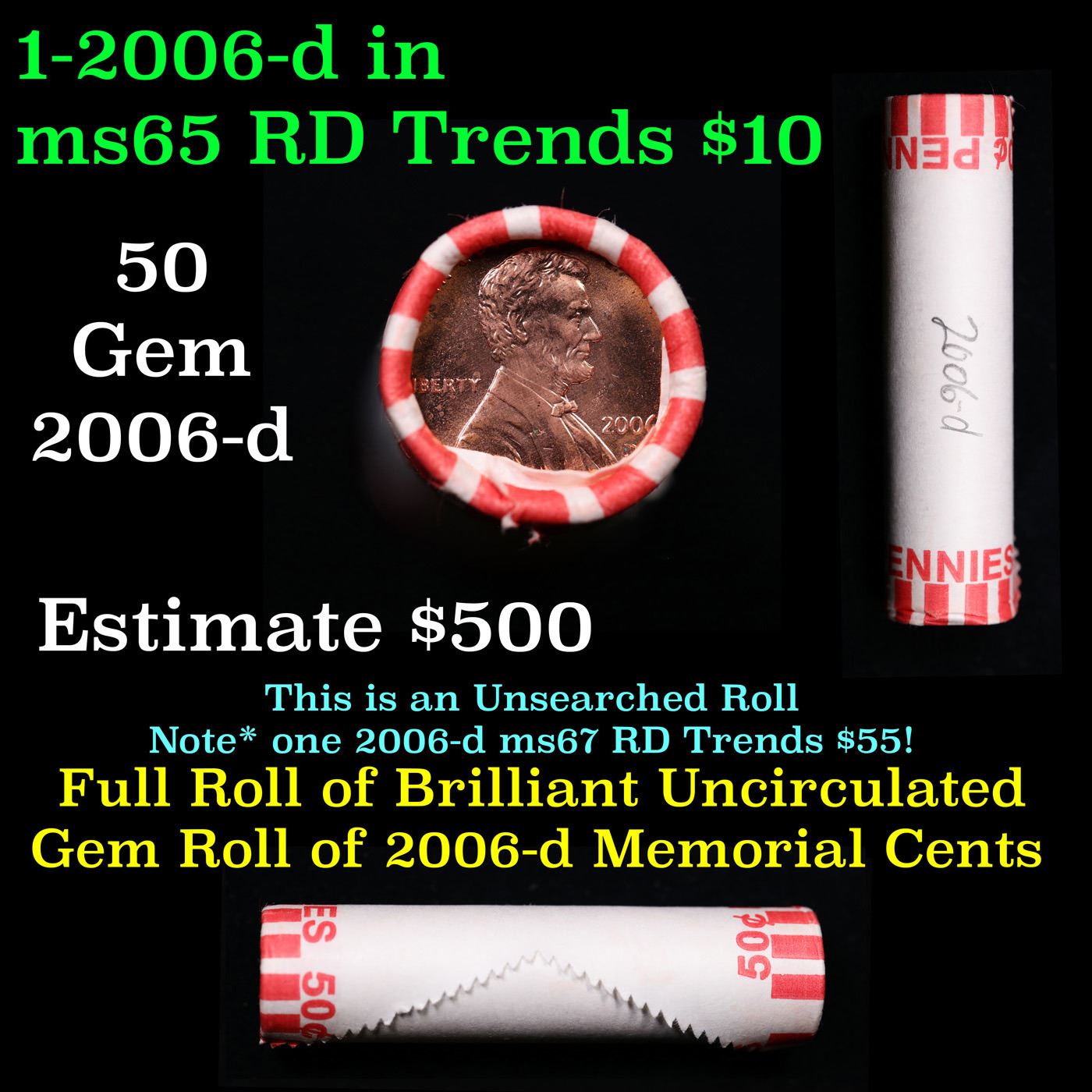 Shotgun Lincoln 1c roll, 2006-d 50 pcs Wrapper.. A terrific Shotgun roll of Lincoln cents. Most if not all coin should be cherry red. Trends ms65 rd $10