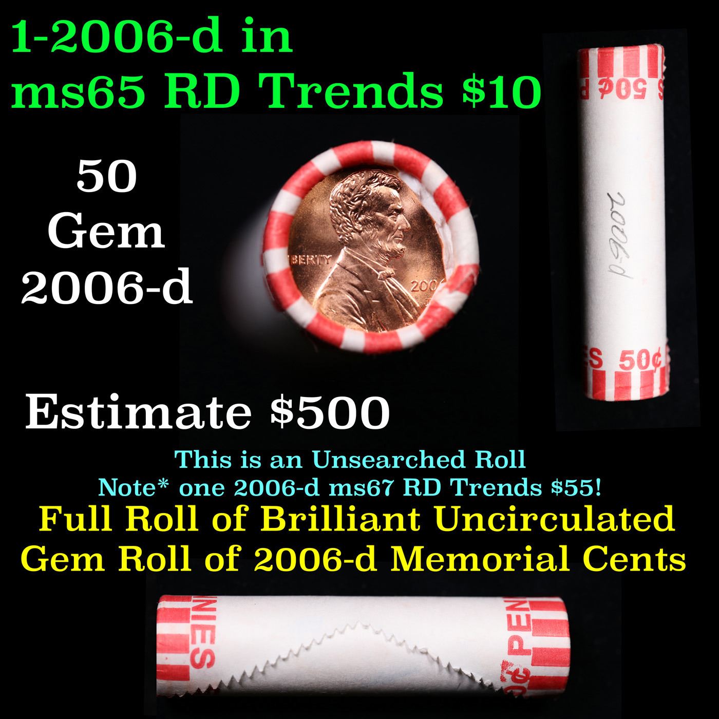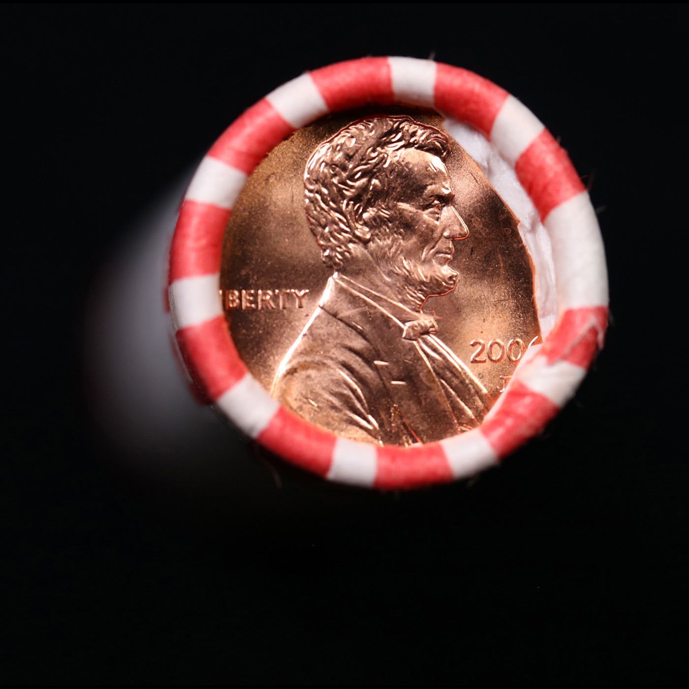 Shotgun Lincoln 1c roll, 2006-d 50 pcs Wrapper.. A terrific Shotgun roll of Lincoln cents. Most if not all coin should be cherry red. Trends ms65 rd $10