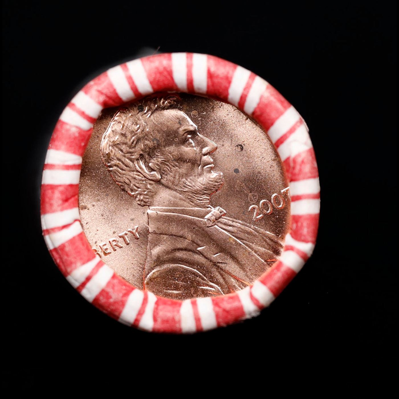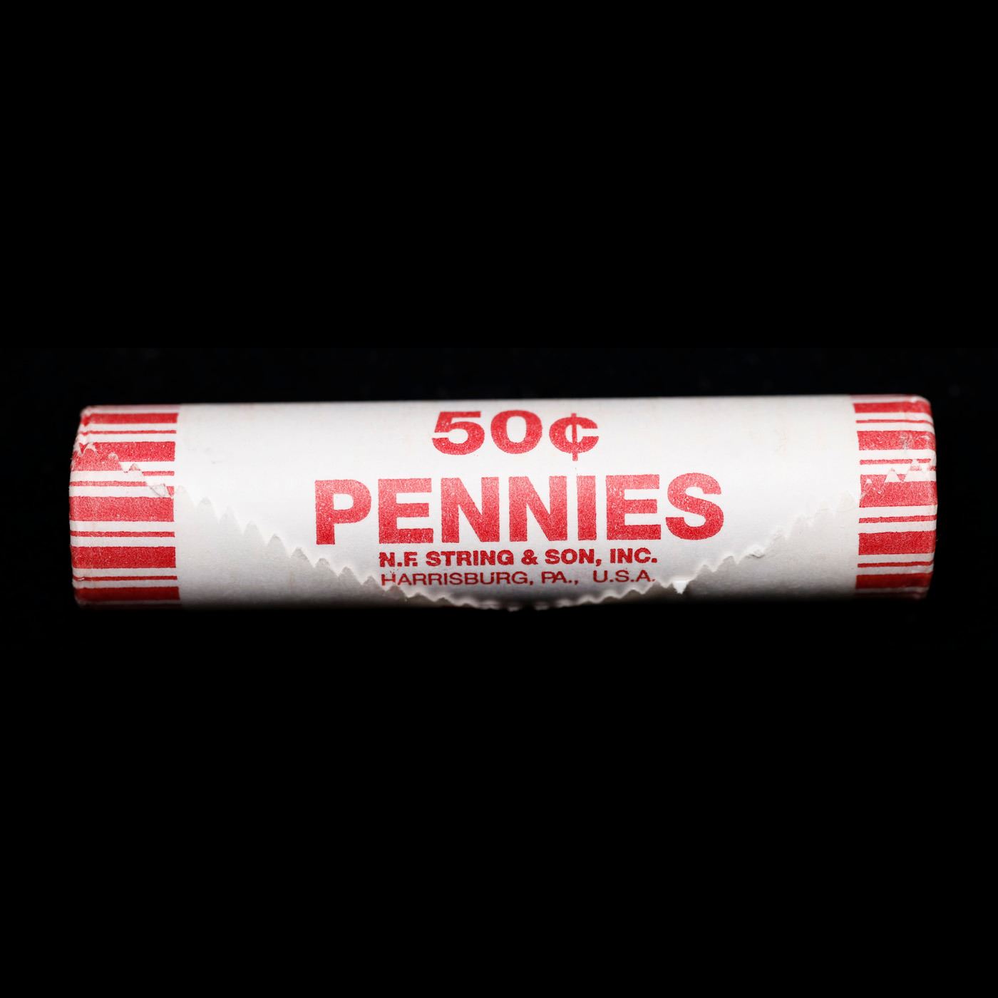 Shotgun Lincoln 1c roll, 2007-p 50 pcs N.F. String & Son Wrapper . A terrific Shotgun roll of Lincoln cents. All coins cherry red. Trends ms65 rd $18
