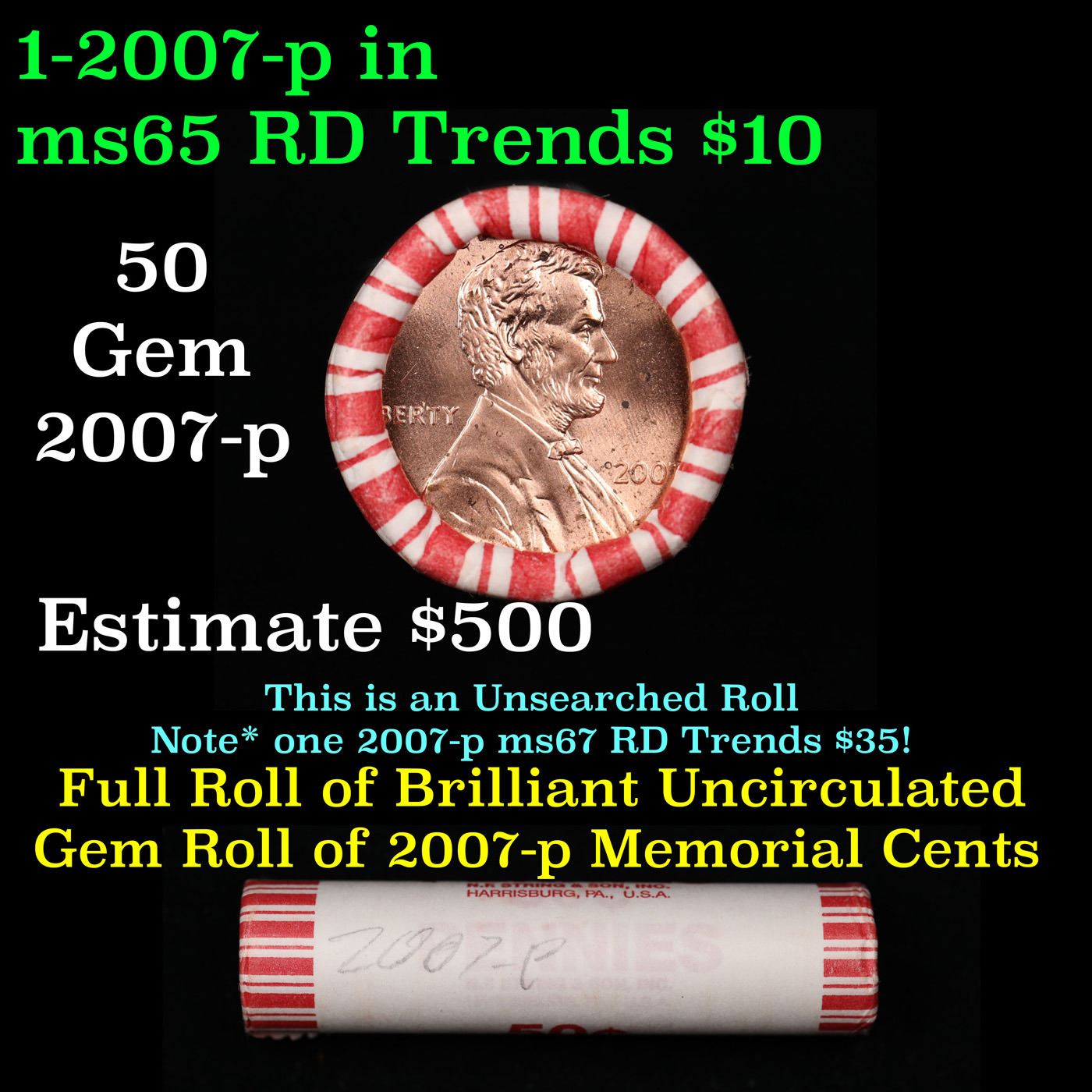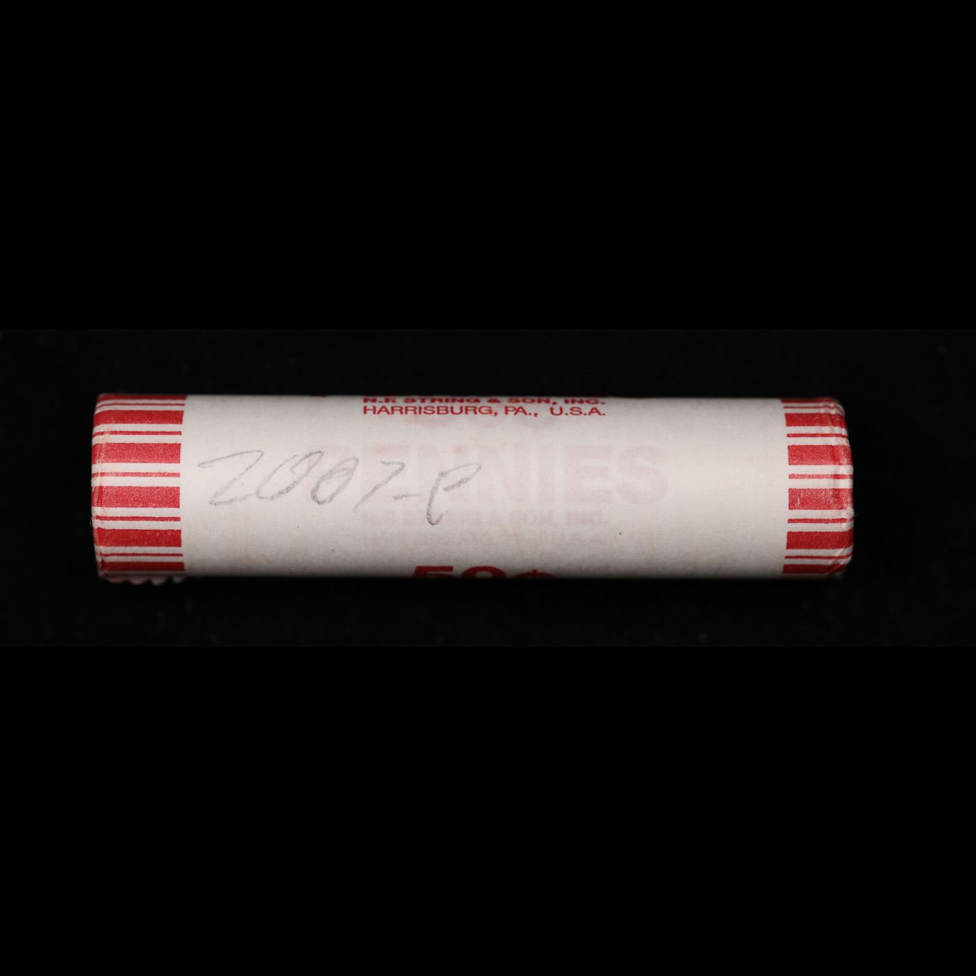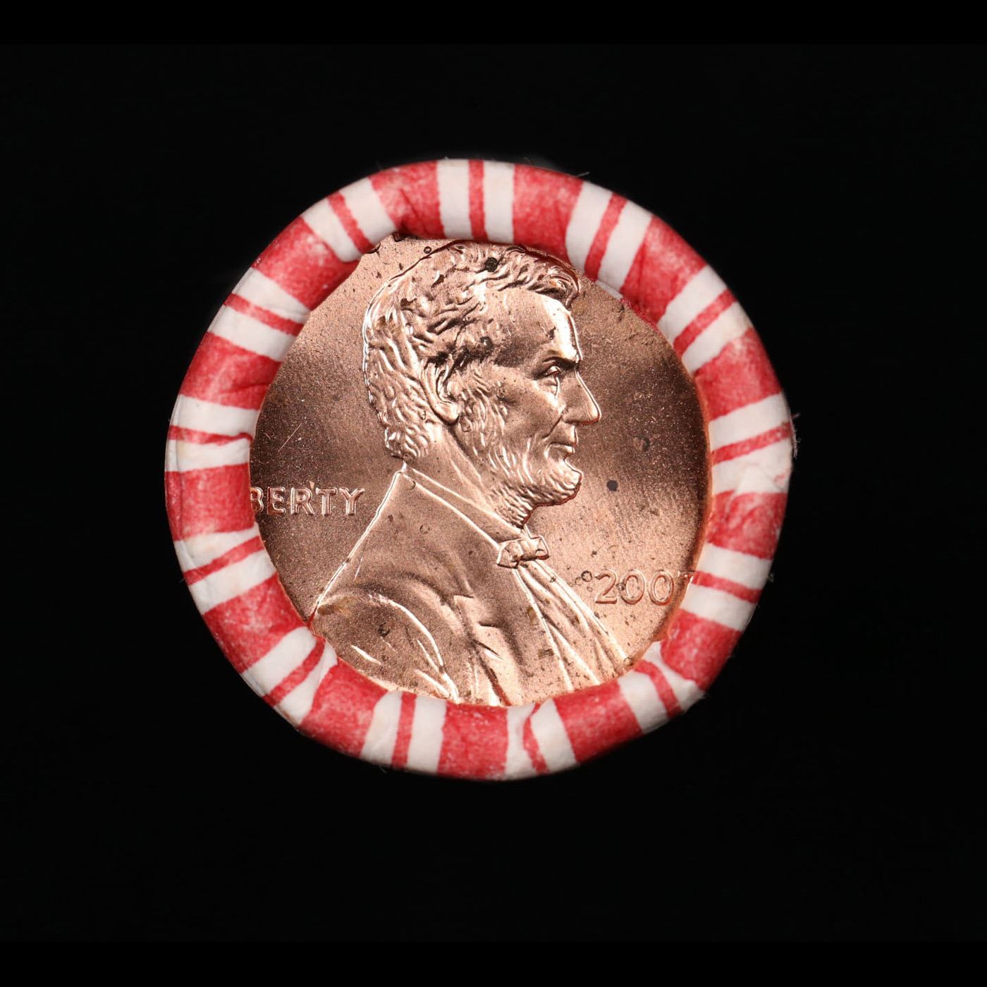 Shotgun Lincoln 1c roll, 2007-p 50 pcs String & Son Wrapper.. A terrific Shotgun roll of Lincoln cents. Most if not all coin should be cherry red.