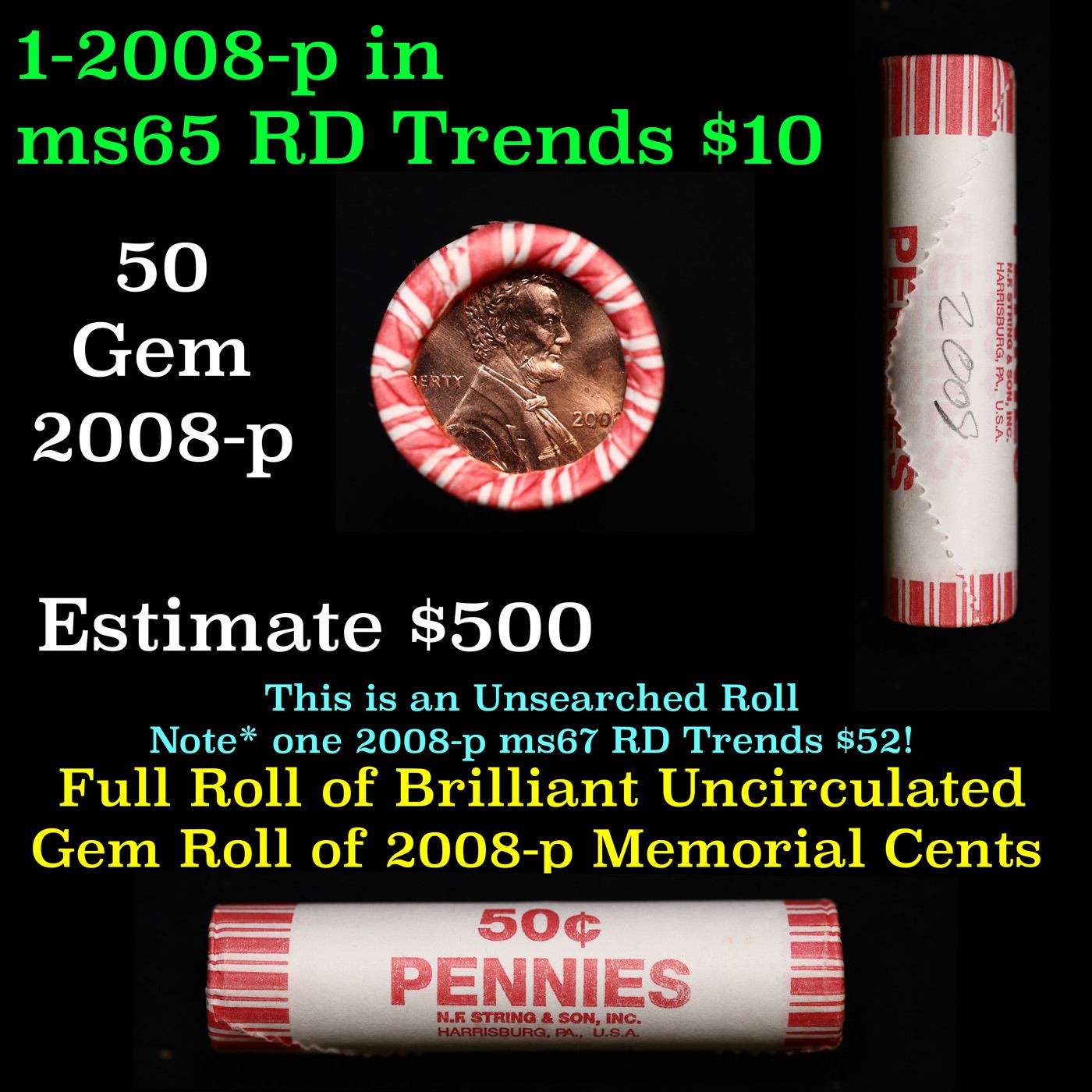 Shotgun Lincoln 1c roll, 2008-p 50 pcs String & Son Wrapper.