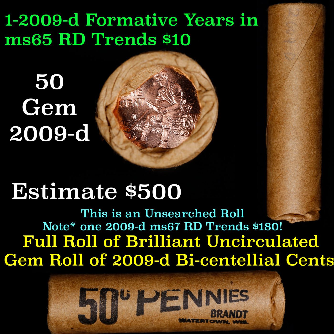 Shotgun Lincoln 1c roll, 2009-d 50 pcs Bank Wrapper.. A terrific Shotgun roll of Lincoln cents. Most if not all coin should be cherry red.