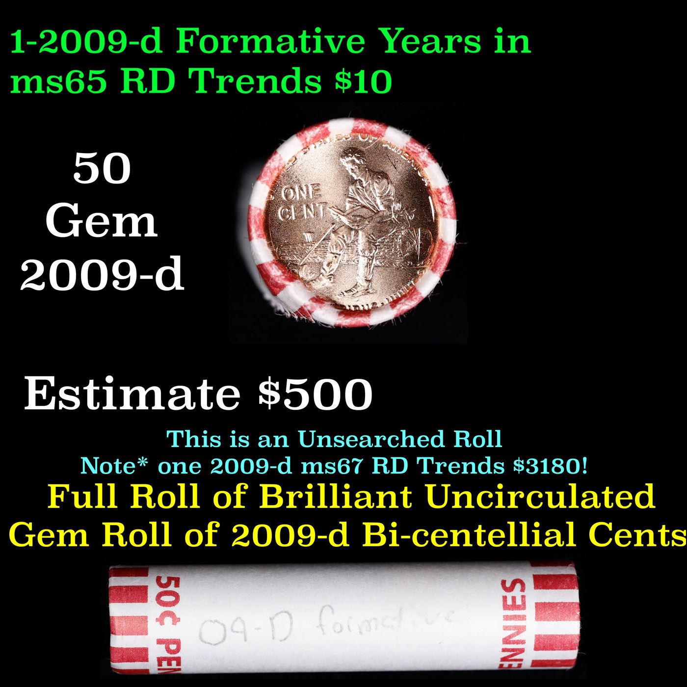 Shotgun Lincoln 1c roll, 2009-d 50 pcs Bank Wrapper.. A terrific Shotgun roll of Lincoln cents. Most if not all coin should be cherry red.