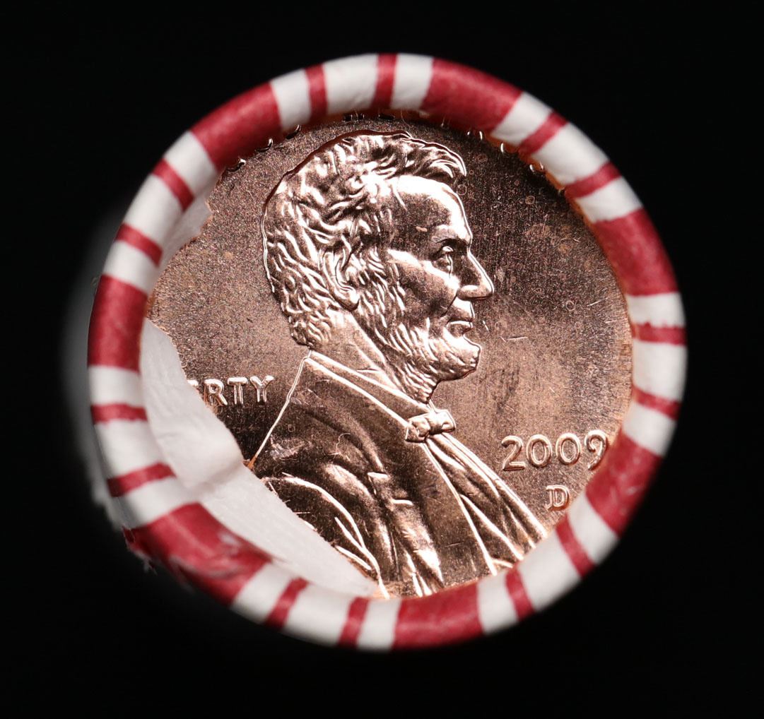 Shotgun Lincoln 1c roll, 2009-d 50 pcs Brandt 50c Wrapper.. A terrific Shotgun roll of Lincoln cents. Most if not all coin should be cherry red.