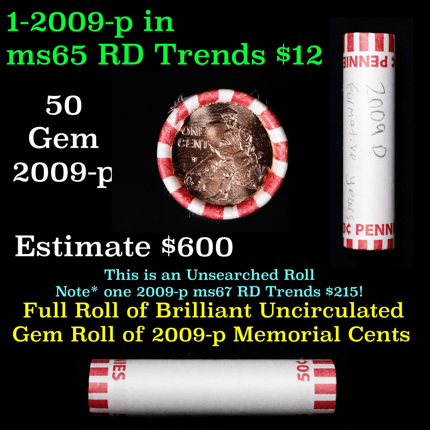 Shotgun Lincoln 1c roll, 2009-d Formative Years 50 pcs Bank Wrapper.. A terrific Shotgun roll of Lincoln cents. Most if not all coin should be cherry red.