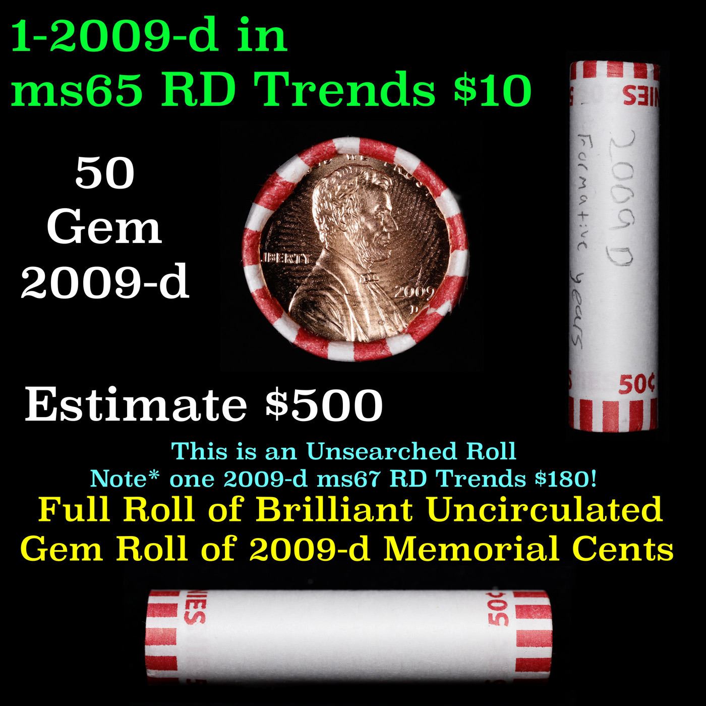 Shotgun Lincoln 1c roll, 2009-d Formative years 50 pcs Bank Wrapper.. A terrific Shotgun roll of Lincoln cents. Most if not all coin should be cherry red.