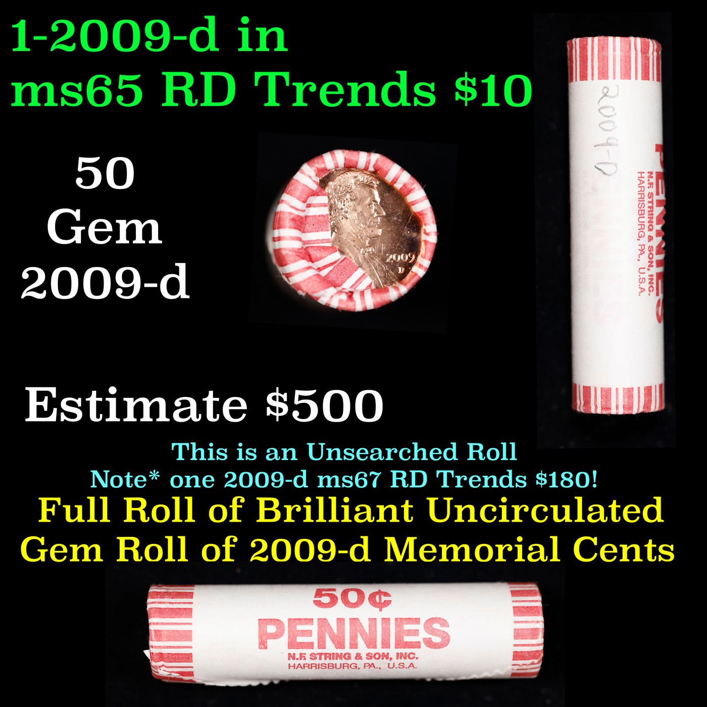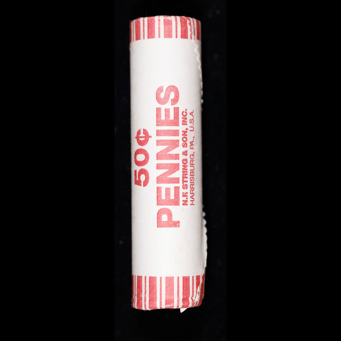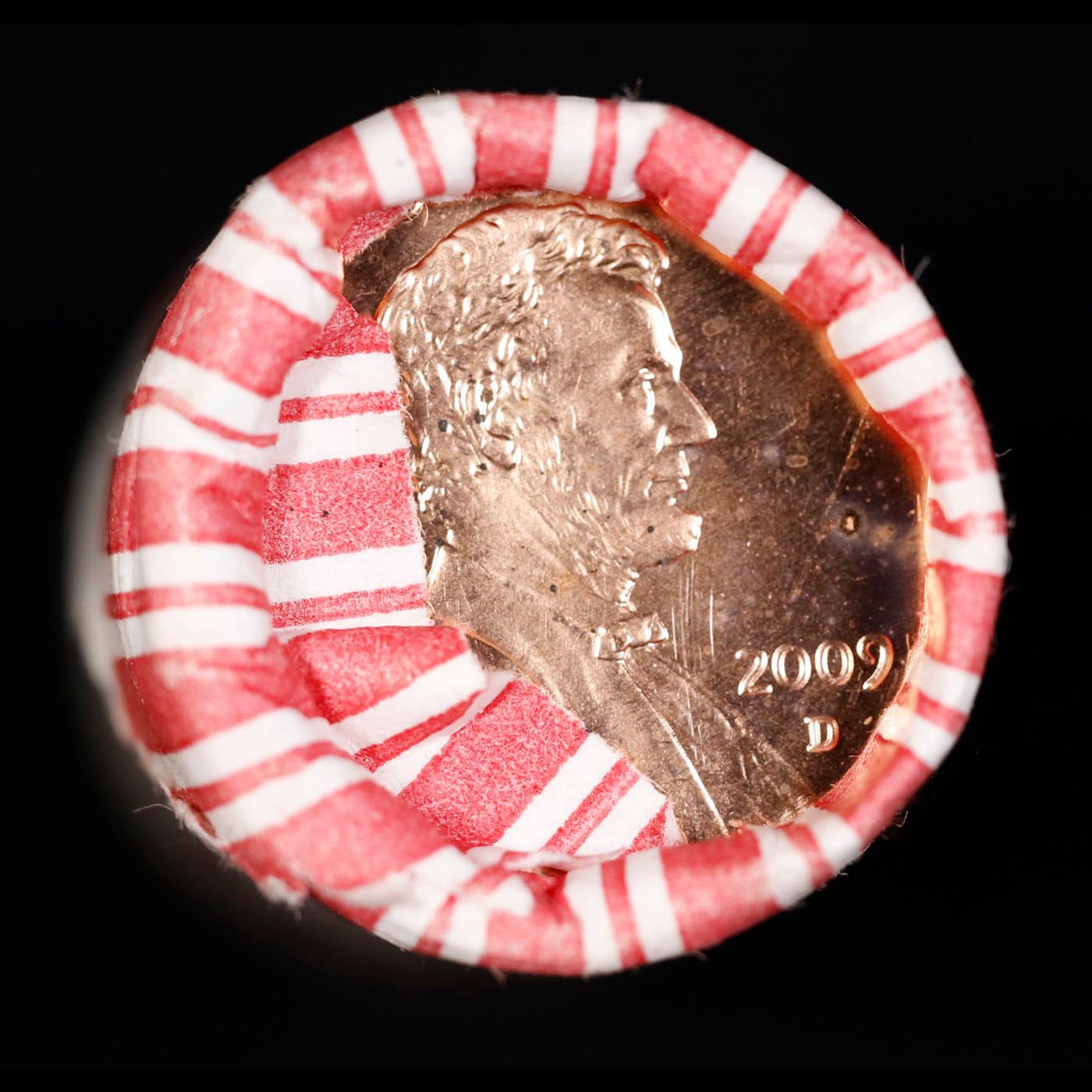 Shotgun Lincoln 1c roll, 2009-d Lincoln-Formative Years Bi-centennial 50 pcs N.F String & Son Wrapper.. A terrific Shotgun roll of Lincoln cents. Most if not all coin should be cherry red. Trends ms65 rd $10