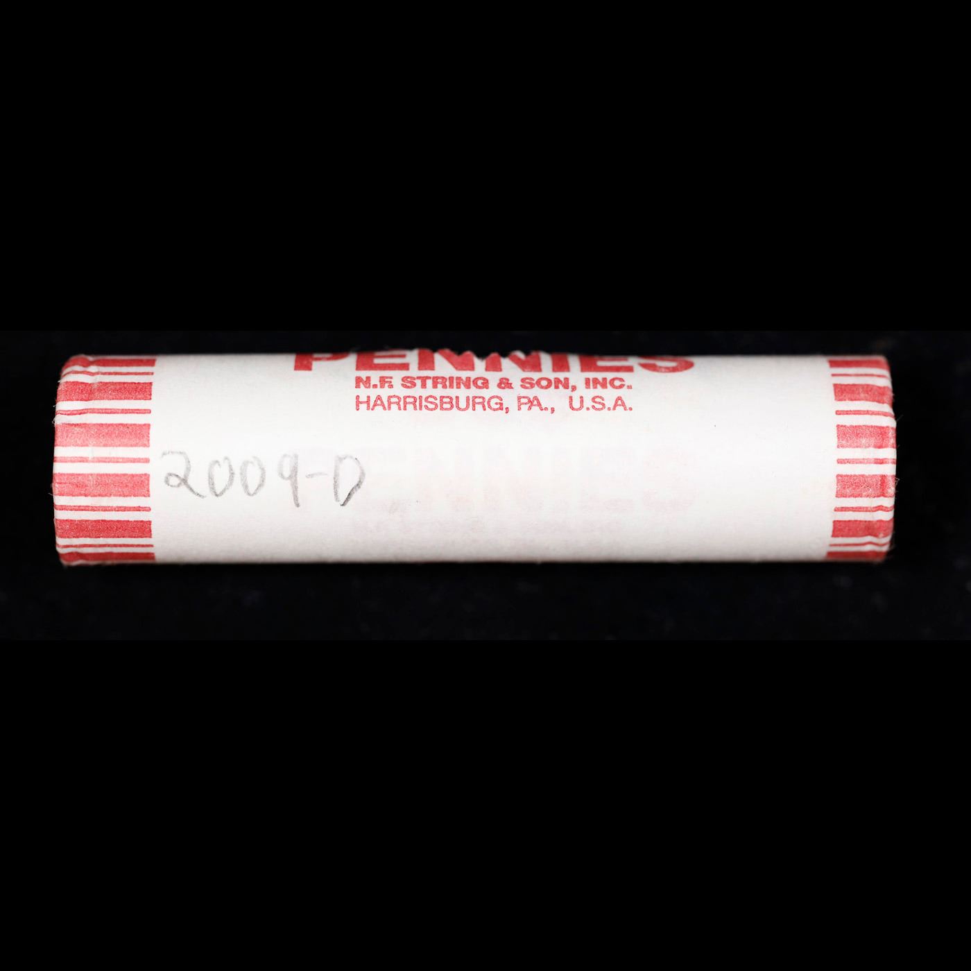 Shotgun Lincoln 1c roll, 2009-d Lincoln-Formative Years Bi-centennial 50 pcs N.F String & Son Wrappe