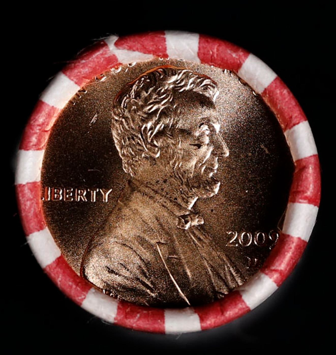 Shotgun Lincoln 1c roll, 2009-d Presidency 50 pcs Bank Wrapper.. A terrific Shotgun roll of Lincoln cents. Most if not all coin should be cherry red.