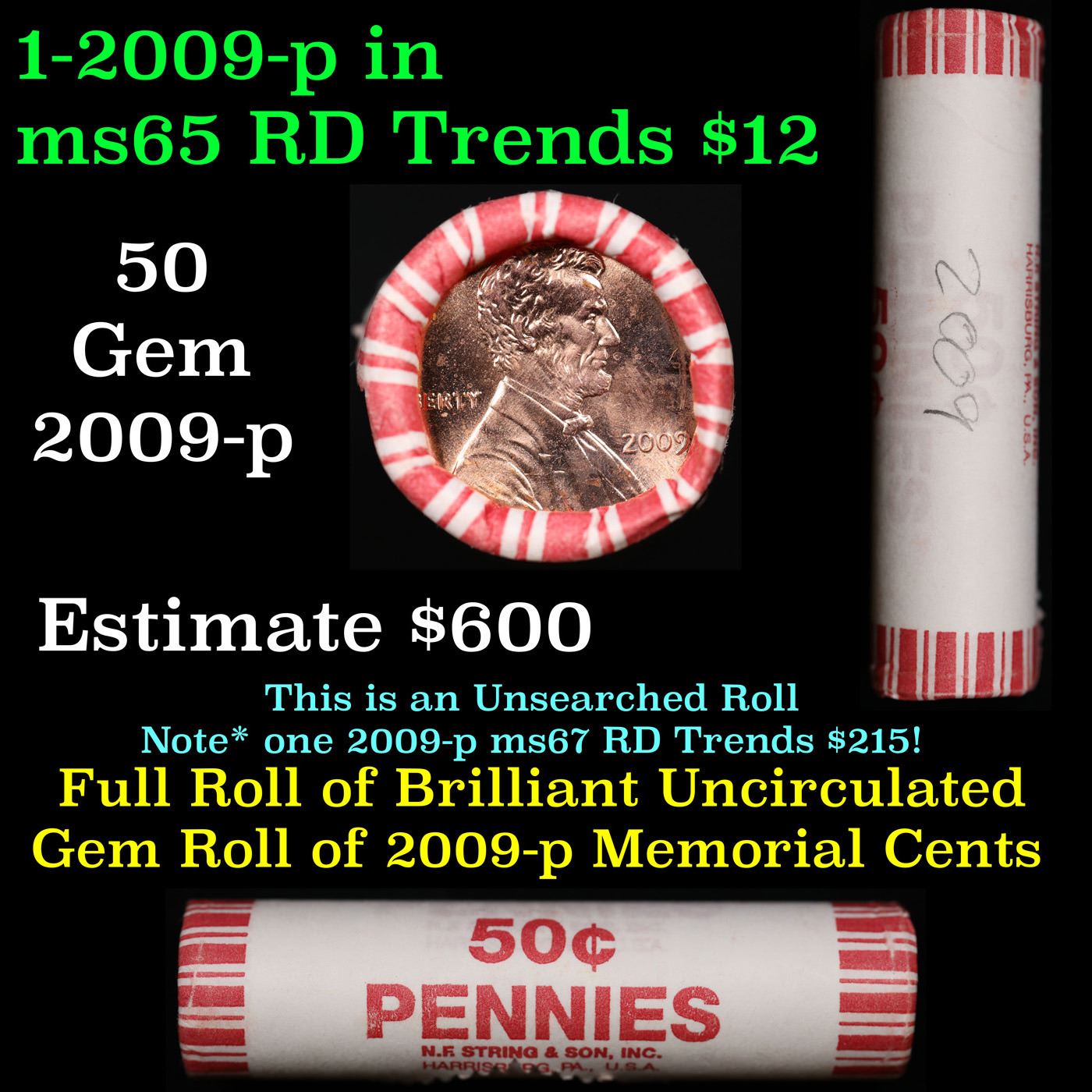 Shotgun Lincoln 1c roll, 2009-p 50 pcs Formative Years String & Son Wrapper.