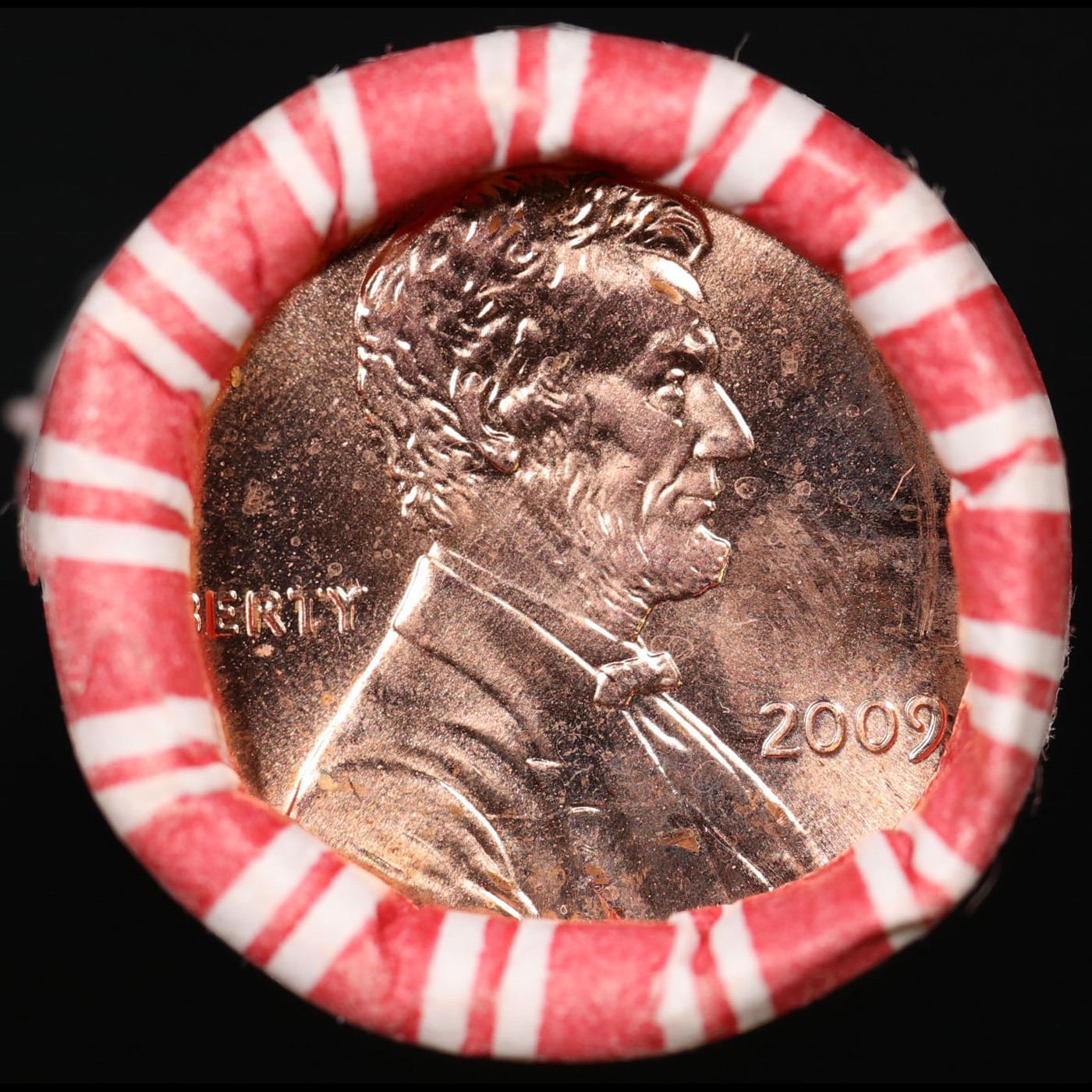 Shotgun Lincoln 1c roll, 2009-p 50 pcs Formative Years String & Son Wrapper.. A terrific Shotgun roll of Lincoln cents. Most if not all coin should be cherry red.