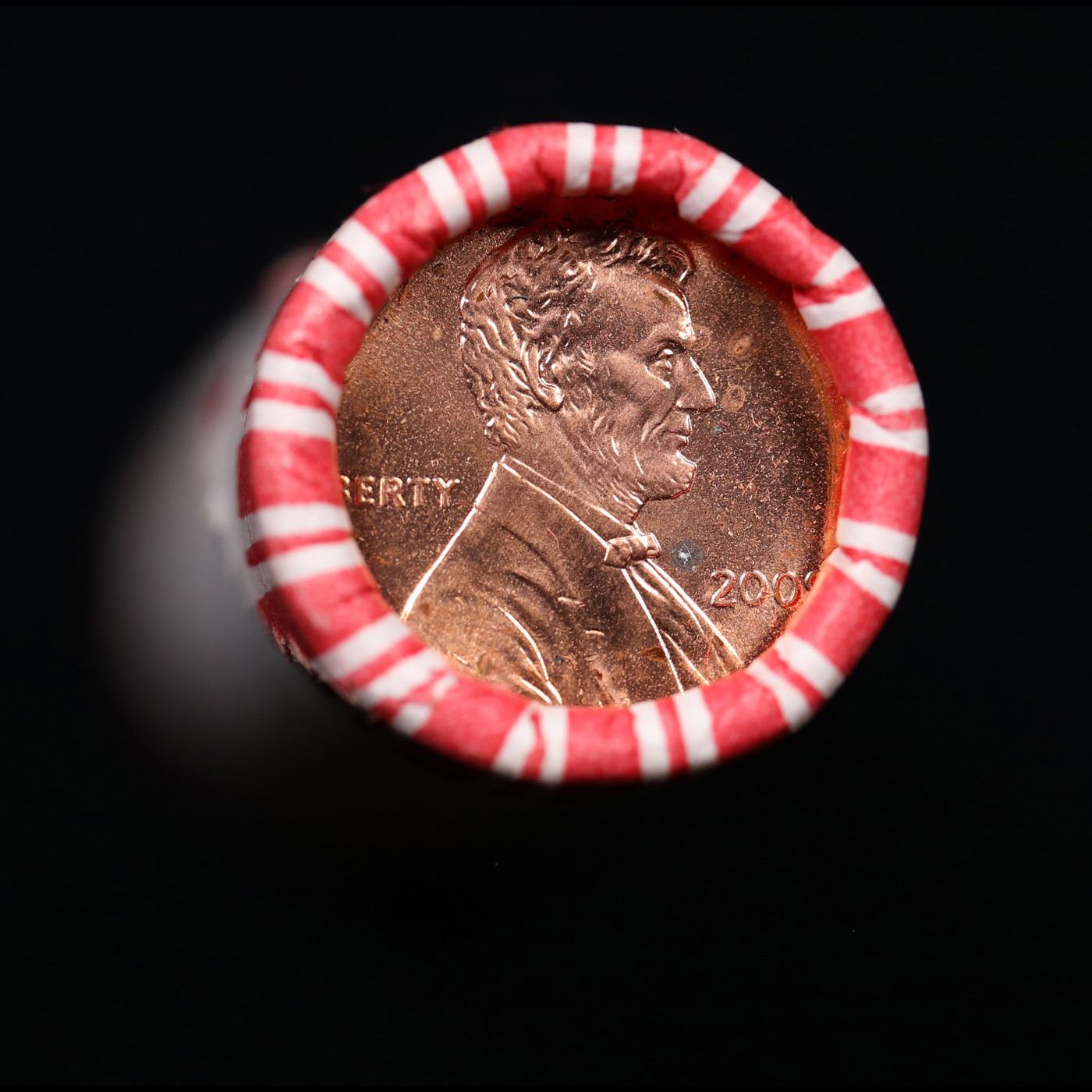 Shotgun Lincoln 1c roll, 2009-p Bi-centennial 50 pcs N.F String & Son Wrapper.. A terrific Shotgun roll of Lincoln cents. Most if not all coin should be cherry red. Trends ms65 rd $10-12