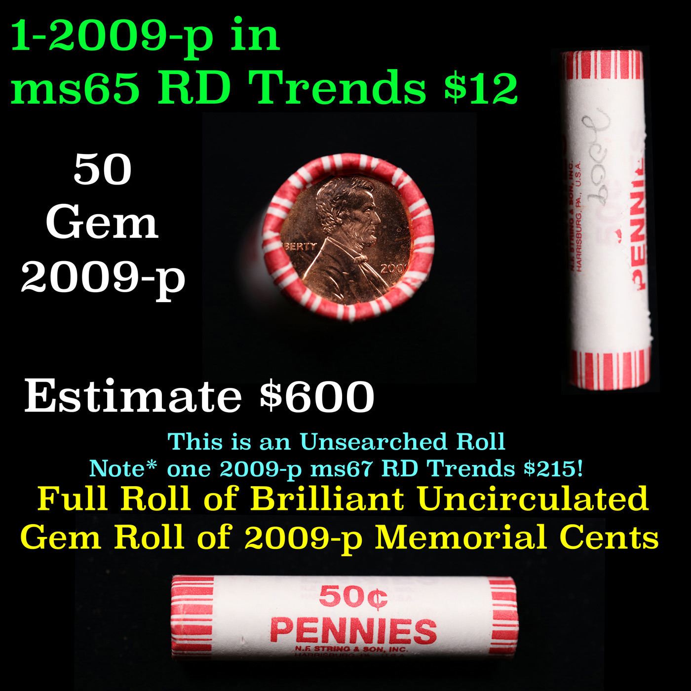 Shotgun Lincoln 1c roll, 2009-p Lincoln-Formative Years Bi-centennial 50 pcs N.F String & Son Wrapper.. A terrific Shotgun roll of Lincoln cents. Most if not all coin should be cherry red. Trends ms65 rd $10