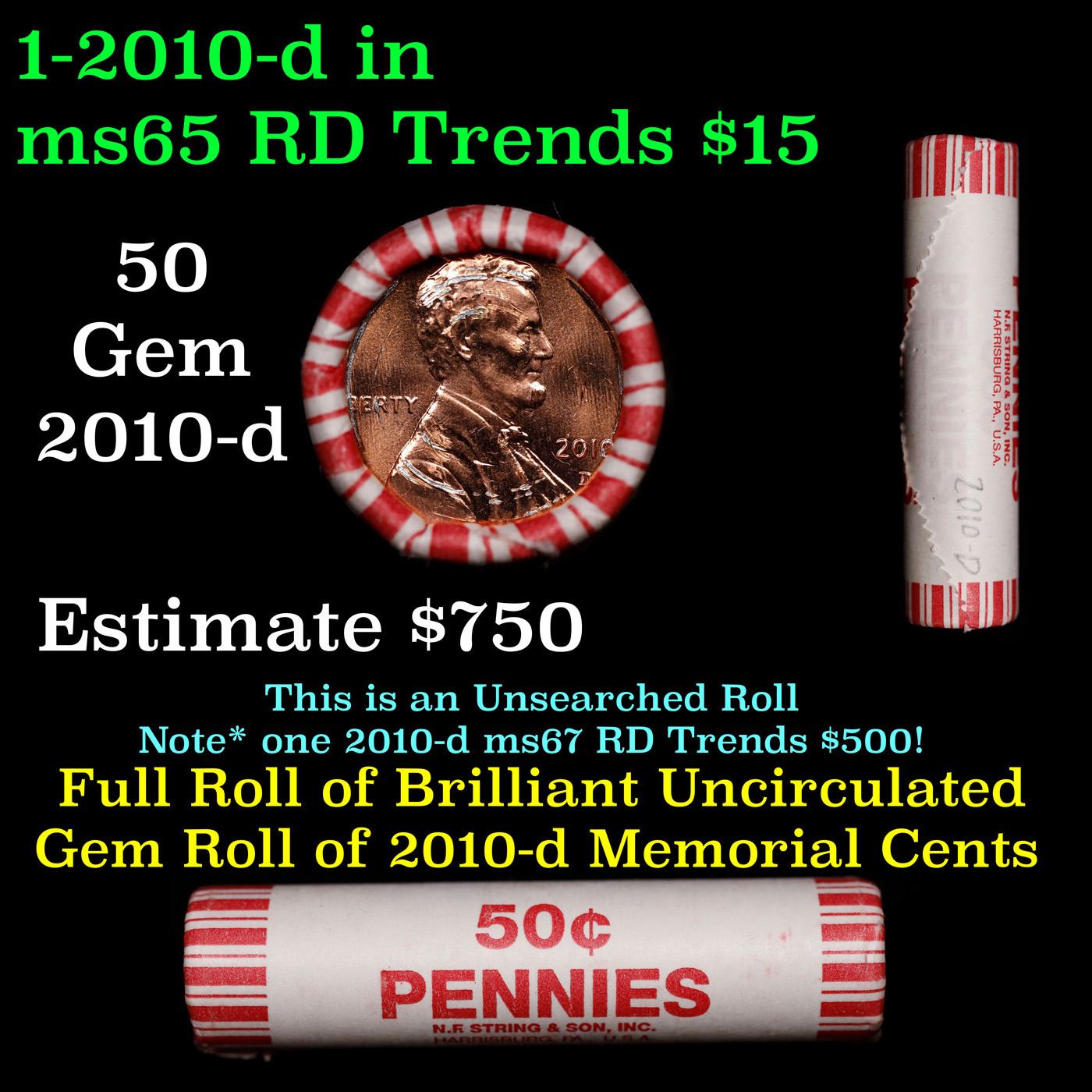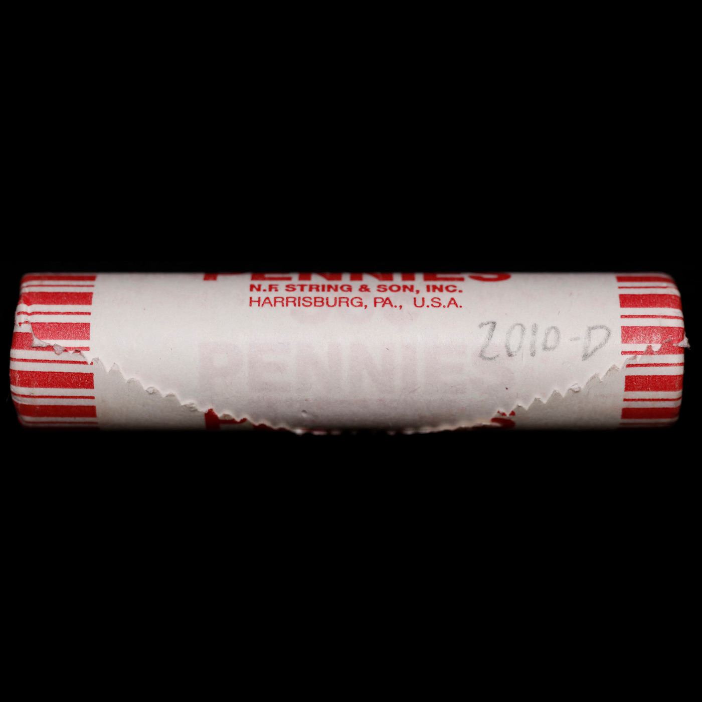 Shotgun Lincoln 1c roll, 2010-d 50 pcs String & Son Wrapper.. A terrific Shotgun roll of Lincoln cents. Most if not all coin should be cherry red.